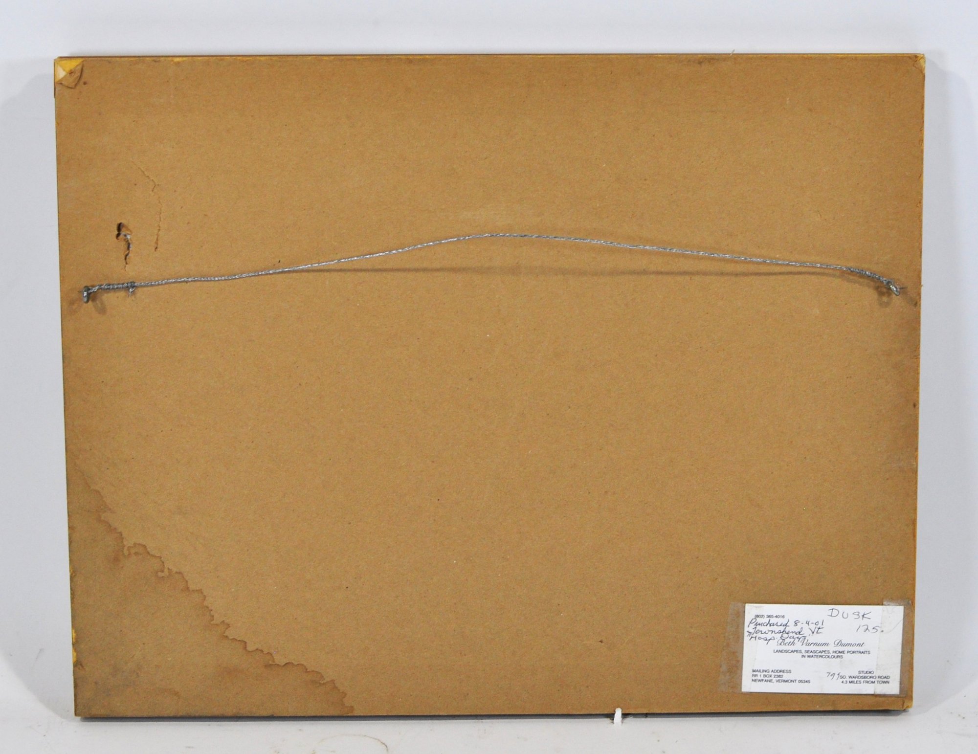 Condition: Artwork appears in good condition. Frame shows minor wear; backing with some age-related staining visible on the reverse.
