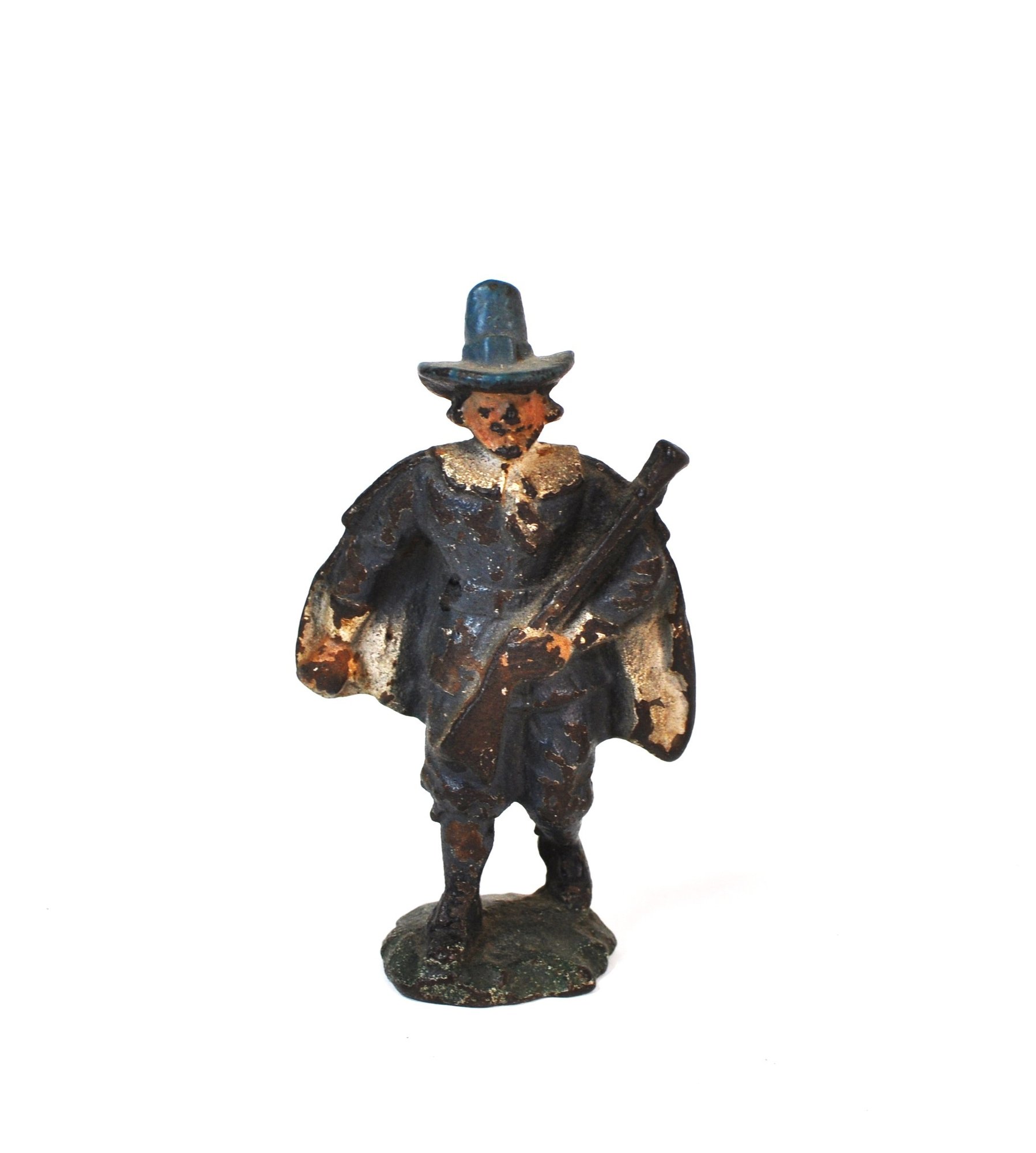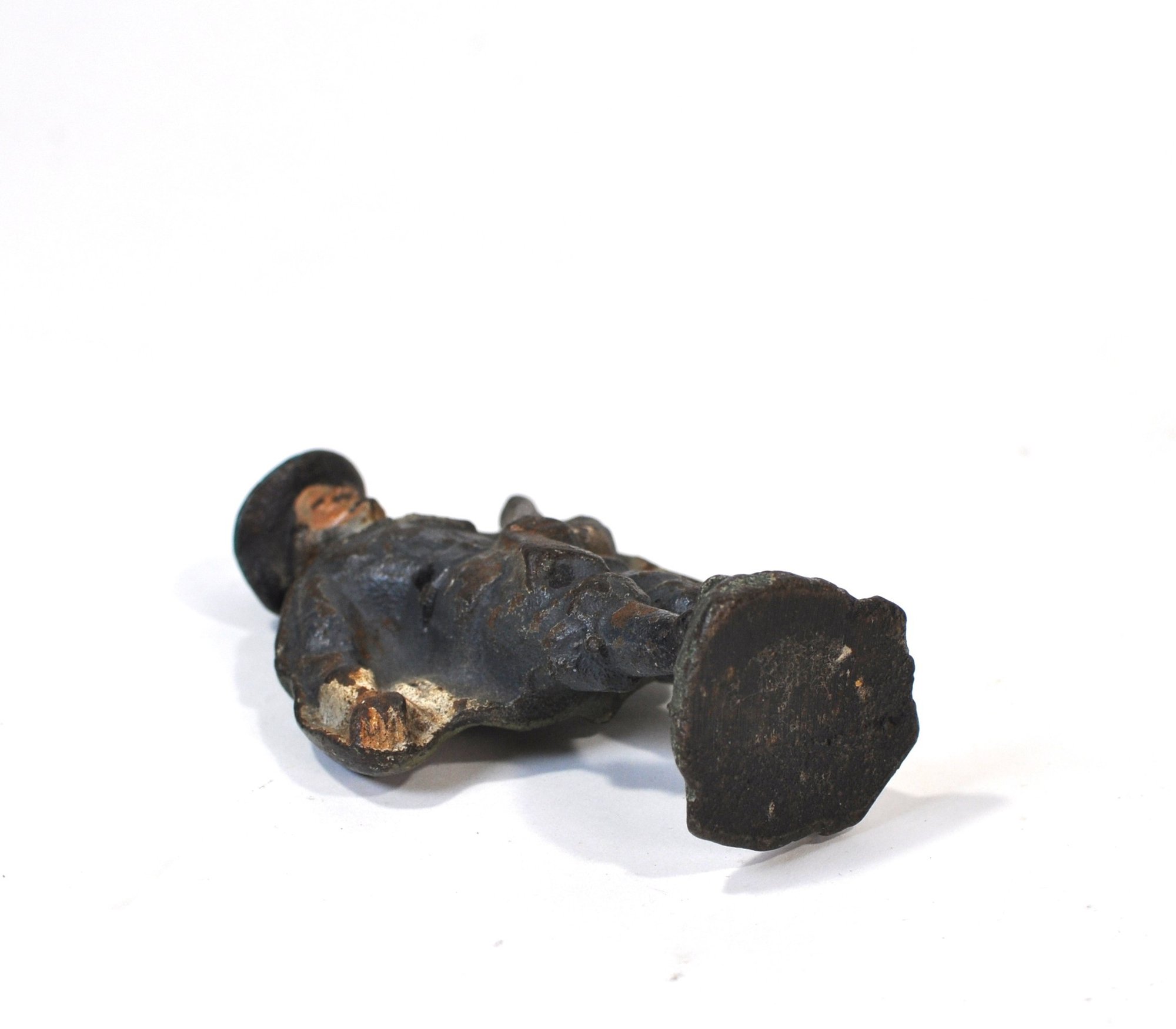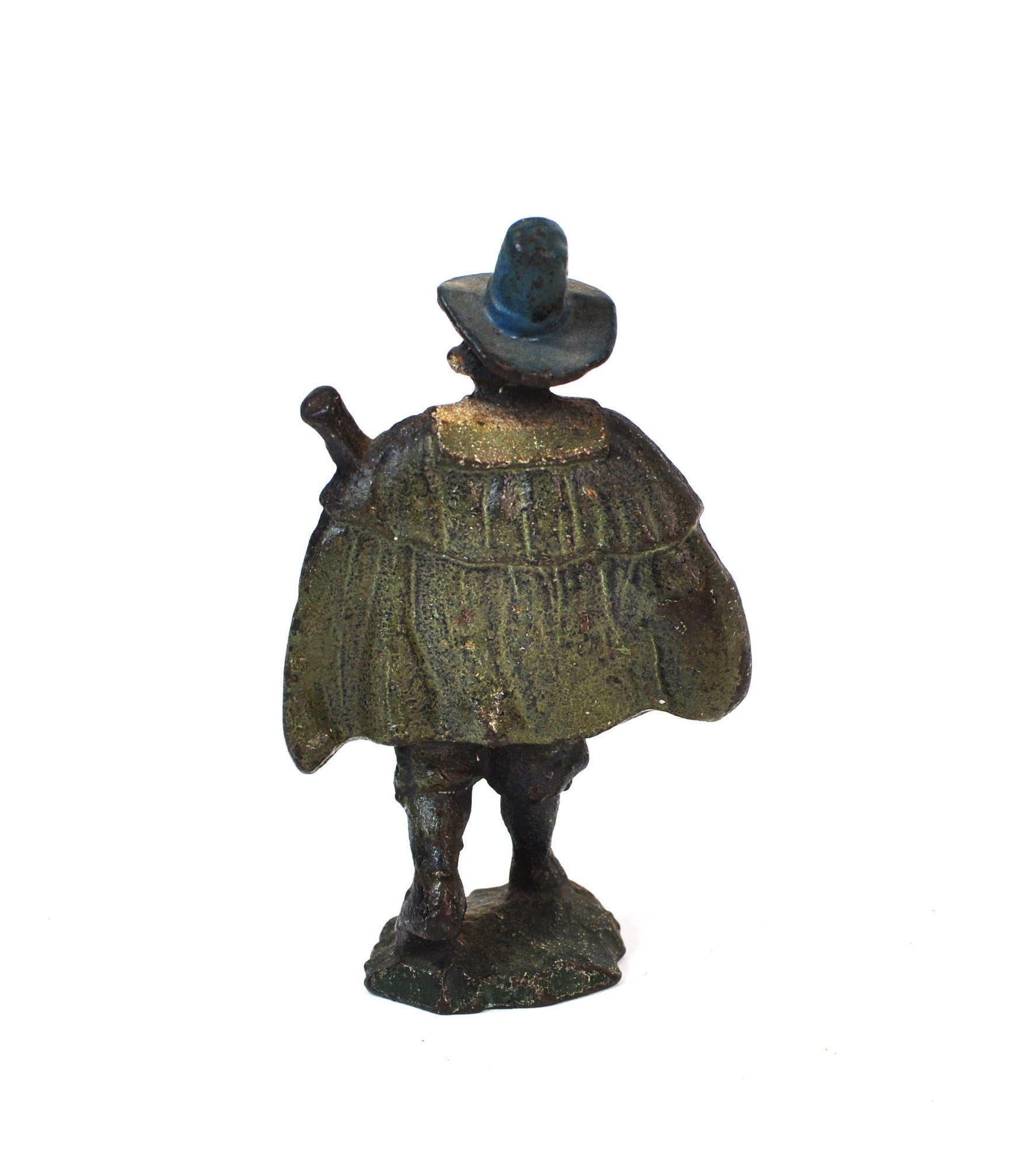 Cast iron figural paperweight depicting a standing man identified as “John,” dating to the 1920s.
