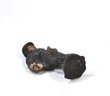 Retains traces of original painted decoration, now largely worn, with a dark aged surface, oxidation, and patina consistent with age.