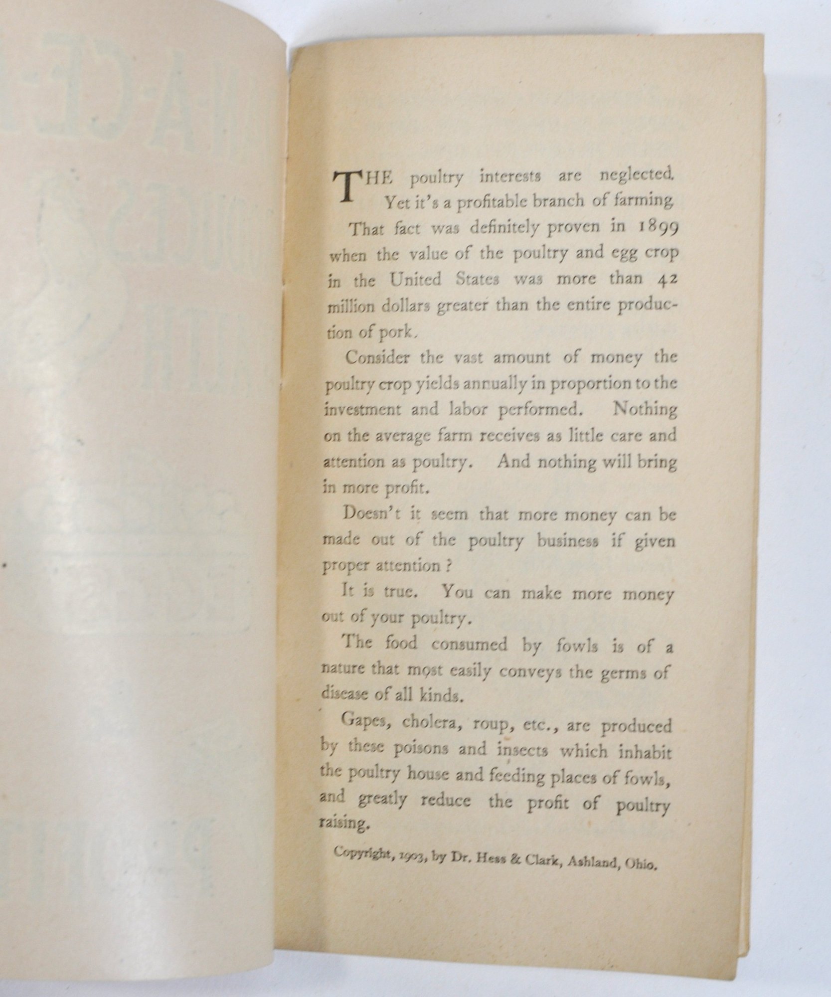 Dr. Hess “Poultry Pan-A-Ce-A” Advertising Booklet – Farm & Poultry Ephemera,1903.