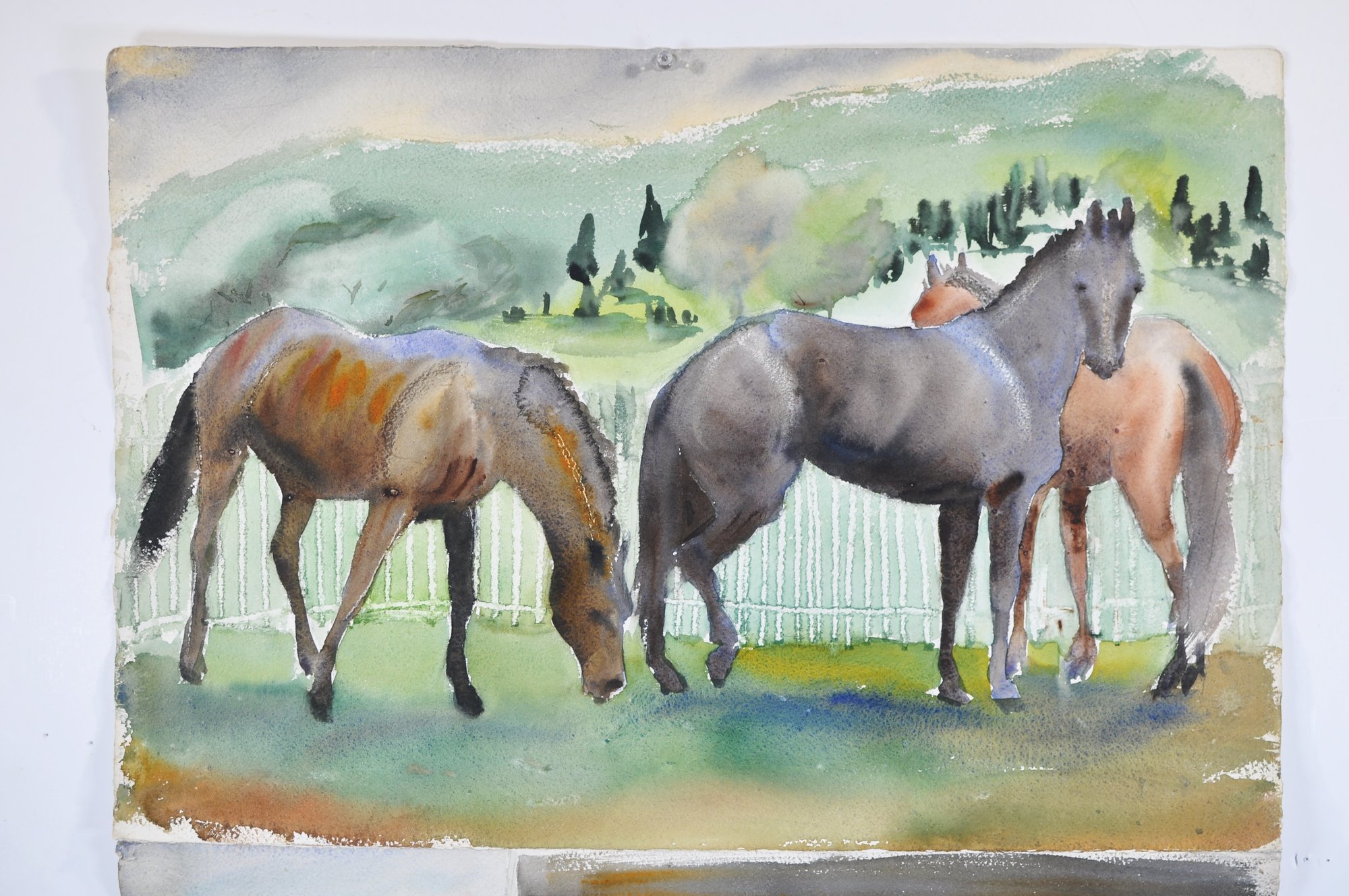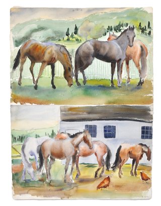 This lot includes 2 watercolors on one large heavy artist paper sheet.