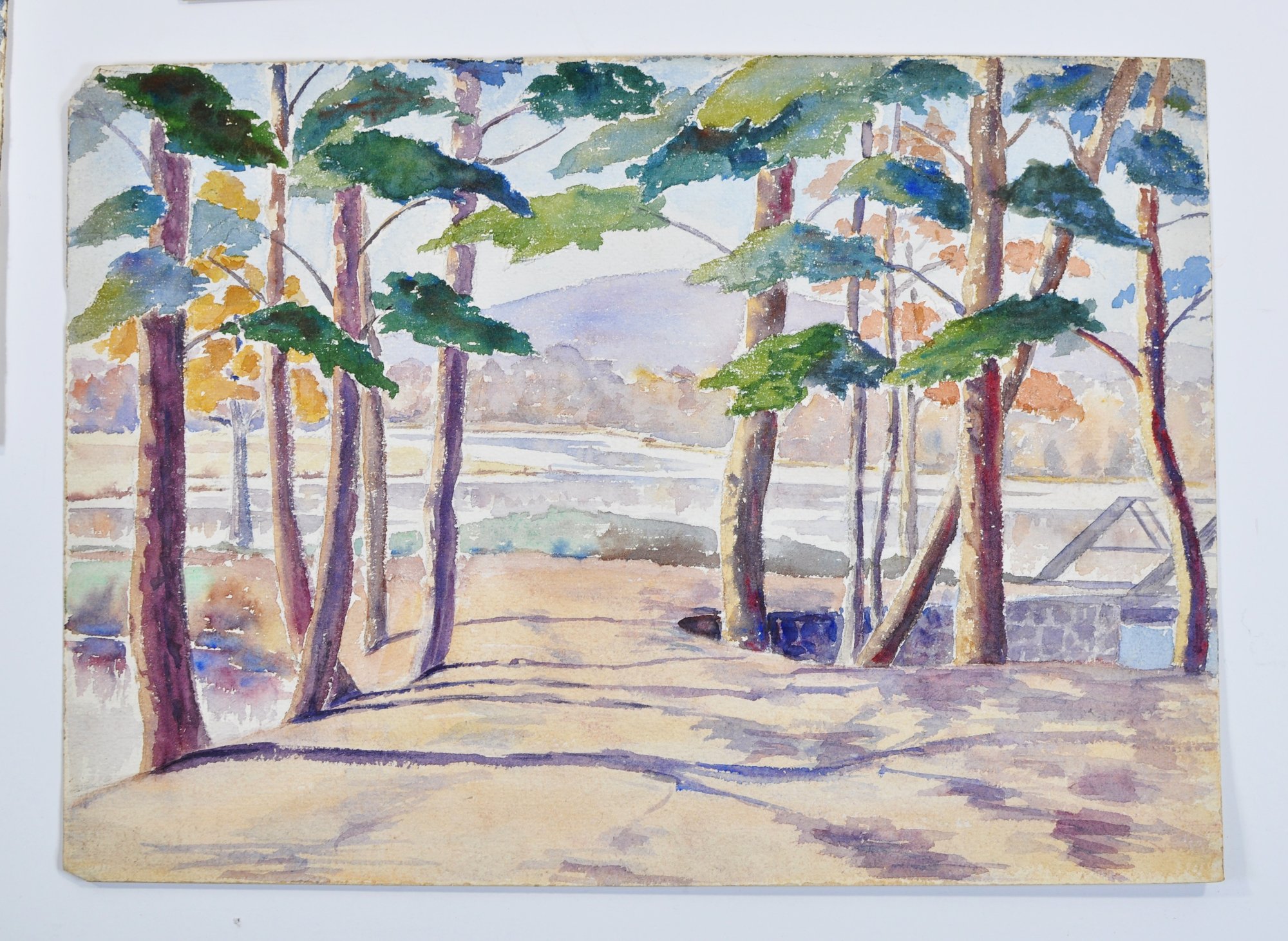 Elizabeth Williams Garstin (American, 20th c.) was known for watercolor landscapes, especially scenic coastal and garden views. These artworks and several other lots come from artist's portfolio, unframed.