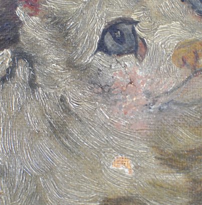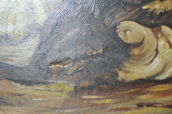 Condition: Canvas has a few spots of damage; please see the last images for close-up details.