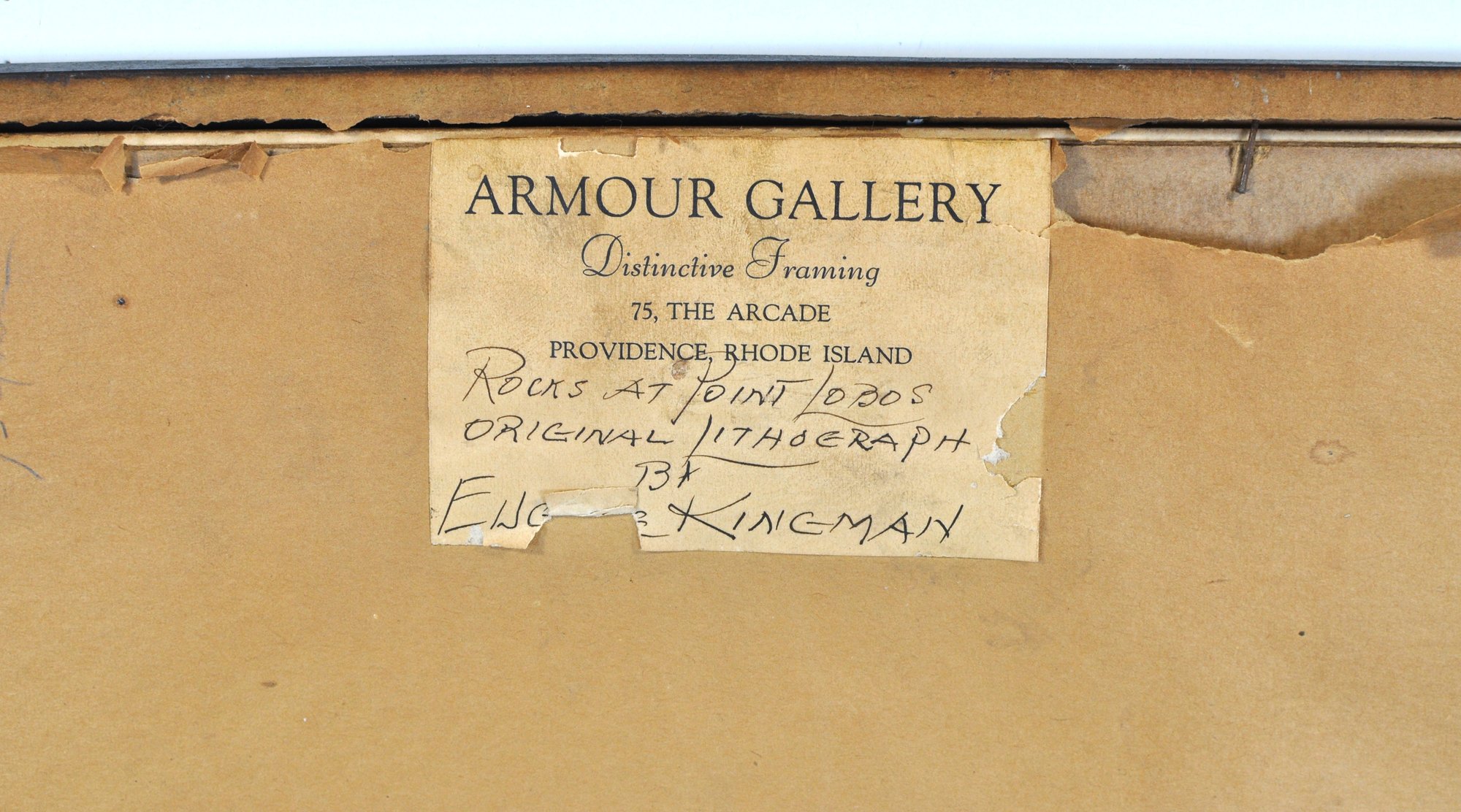Verso bears original Armour Gallery, Providence, Rhode Island framing label.