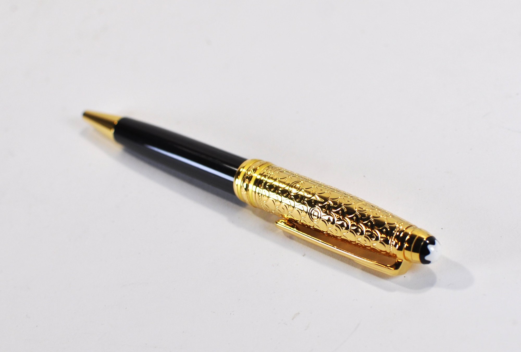 The pen is presented in its original Montblanc presentation box and includes the outer sleeve, service guide booklet, and branded pouch, as shown.