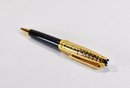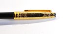 Elegant Montblanc rollerball pen featuring a glossy black resin barrel paired with a richly gold-plated cap, finely engraved with ornate scrollwork and a central elephant motif. The cap is topped with the iconic Montblanc white star emblem and fitted with a gold-plated clip.