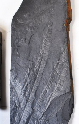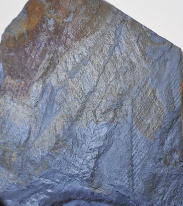 Unprepared, natural condition with edge losses and surface irregularities consistent with fossil shale. See images for details.