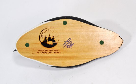 The underside is stamped “Decoys Ltd.” with a tree logo and marked “Handcrafted for The Canadian Carver,” and is additionally signed on the base, as photographed.