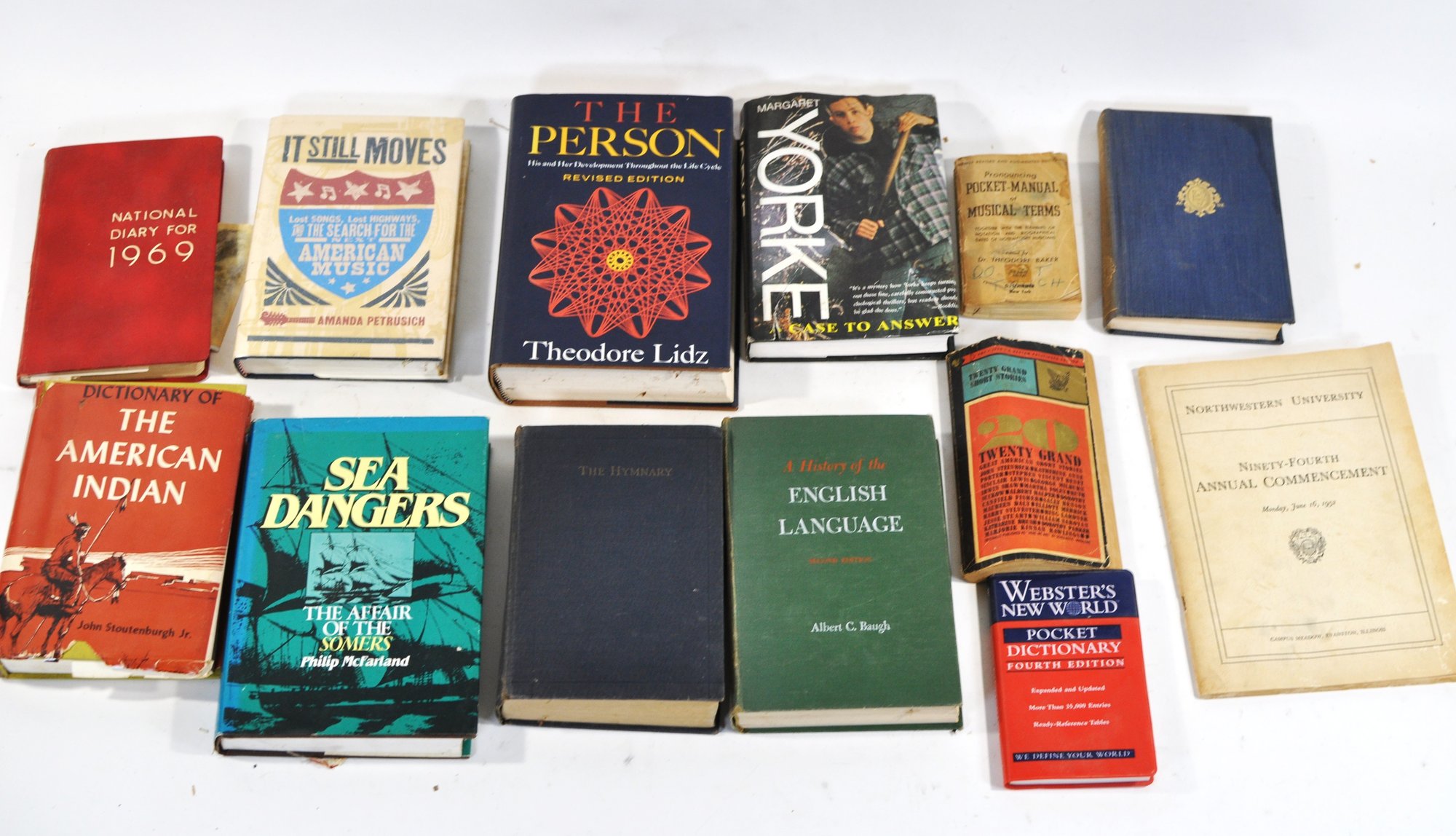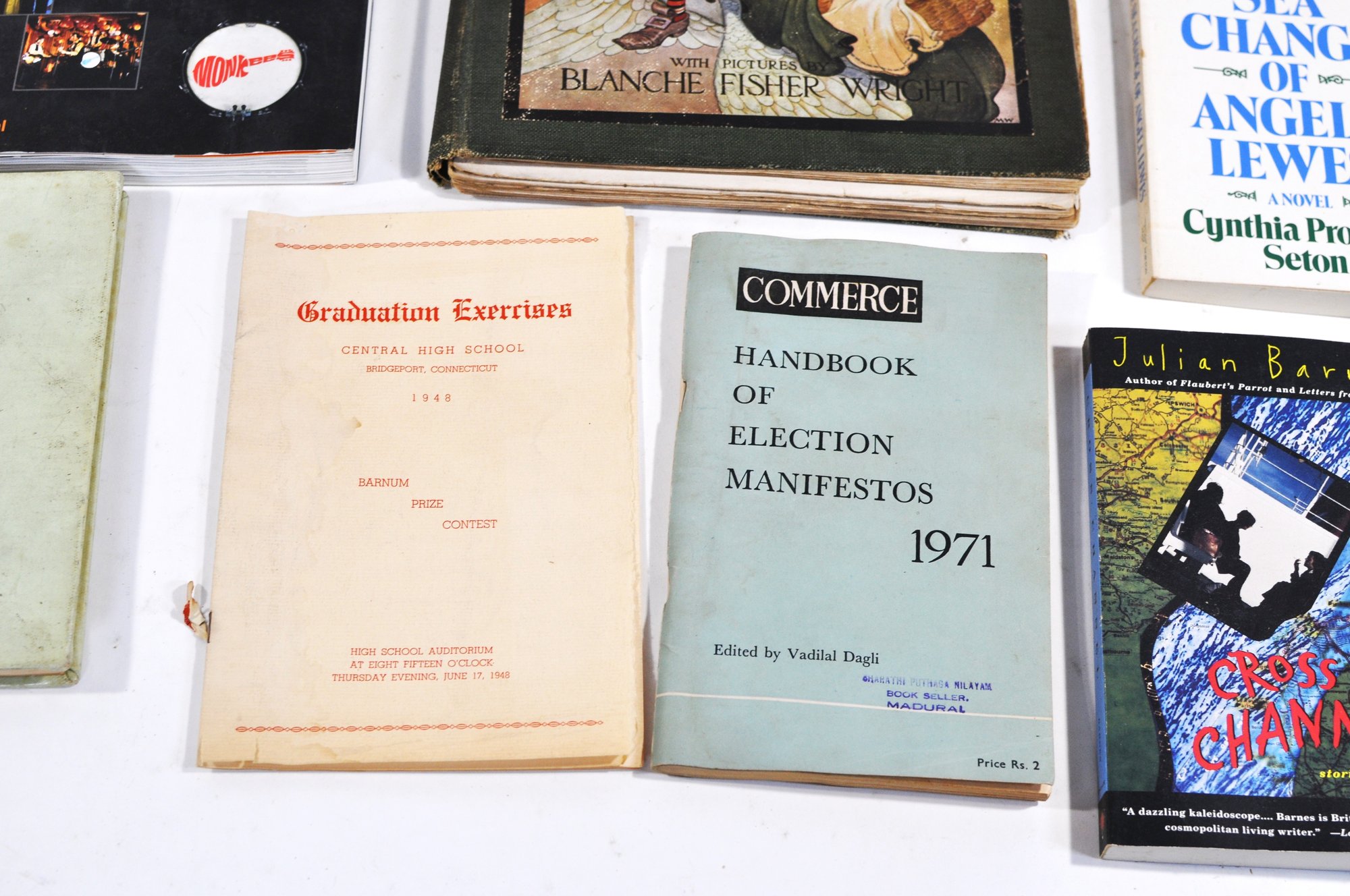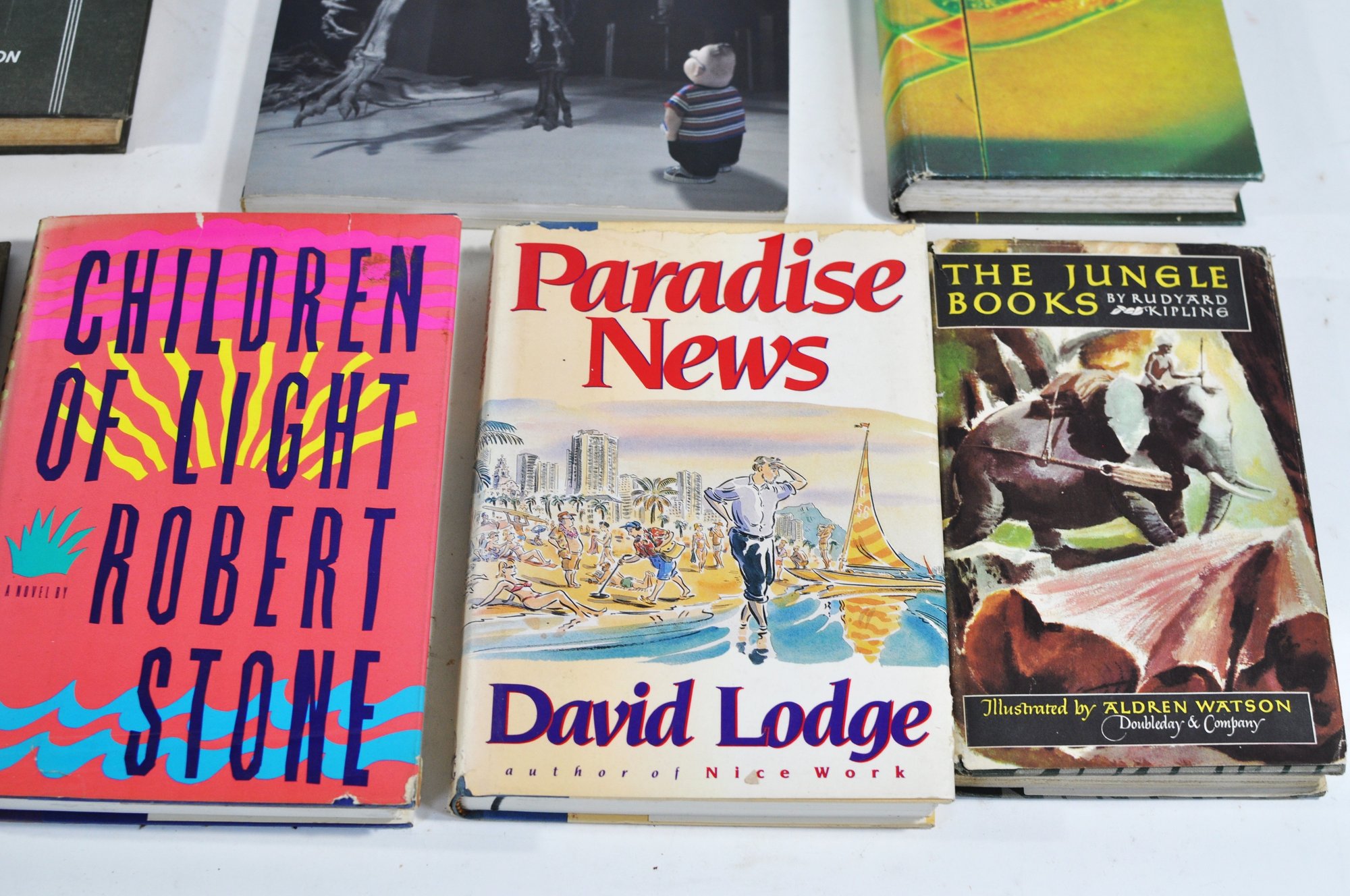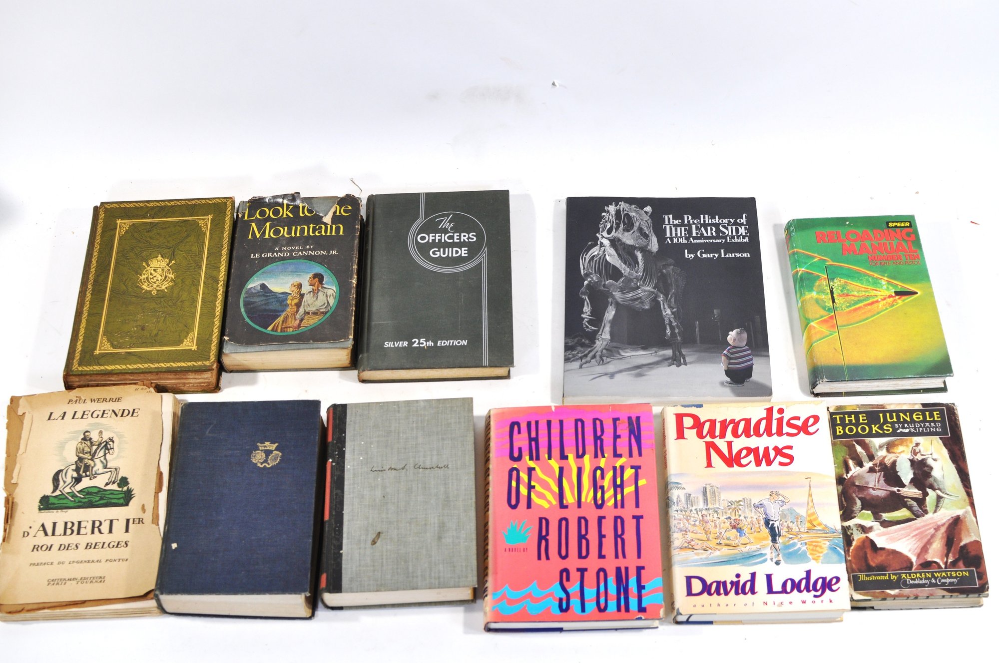 Visible titles include Children of Light by Robert Stone, Paradise News by David Lodge, The Jungle Books by Rudyard Kipling, The Officers Guide (Silver 25th Edition), Sea Dangers by Philip McFarland, Dictionary of the American Indian, The Monkees, Valley of the Far Side by Gary Larson, Katy No-Pocket, and others.