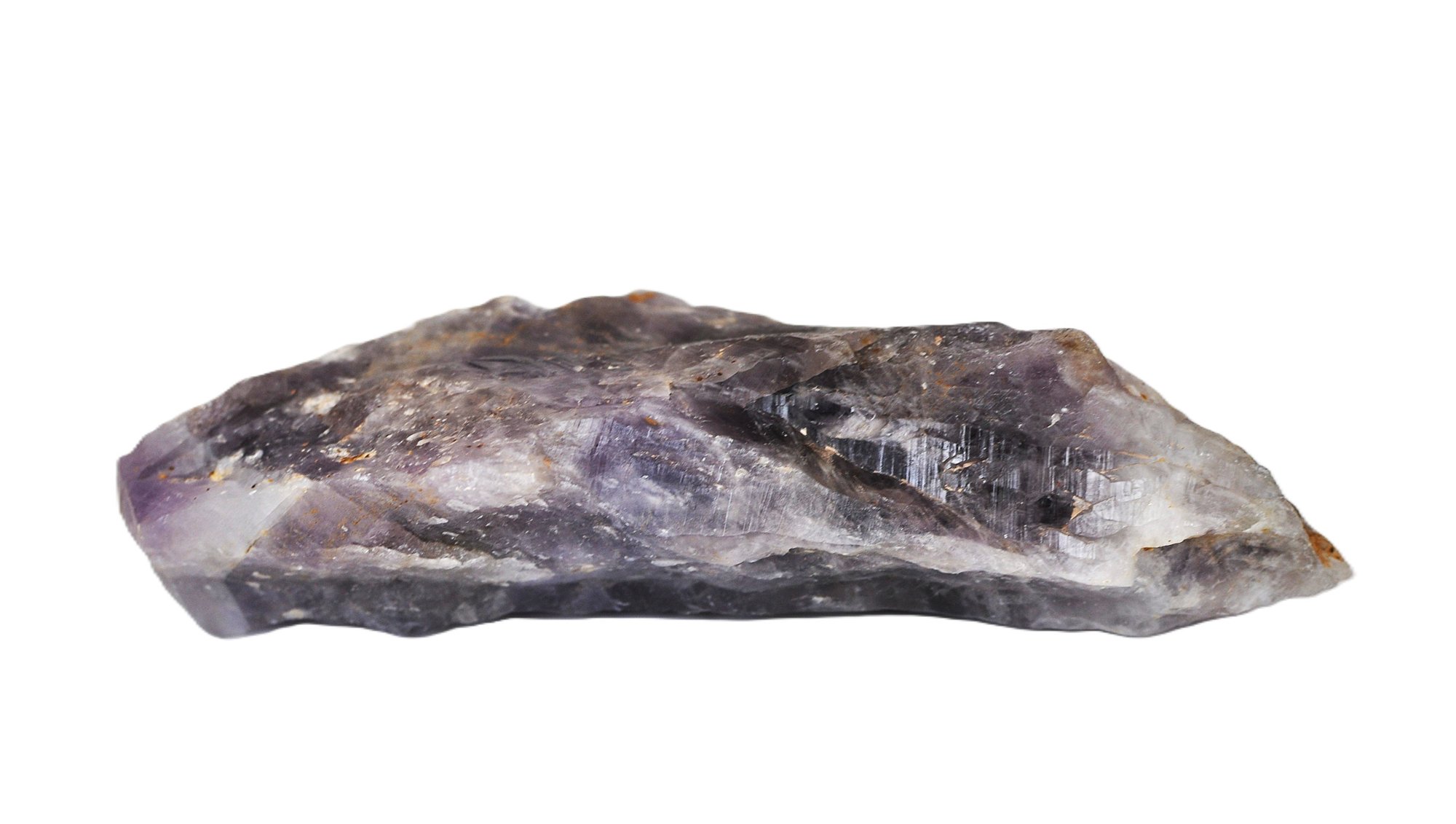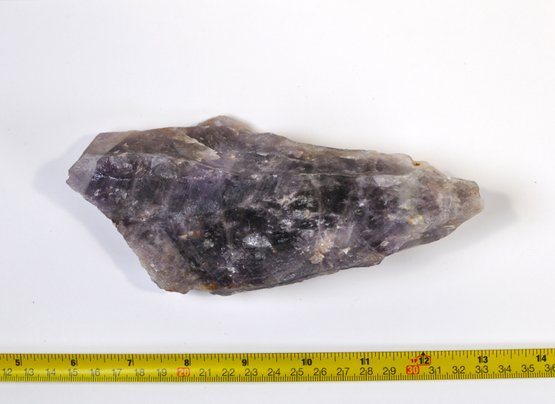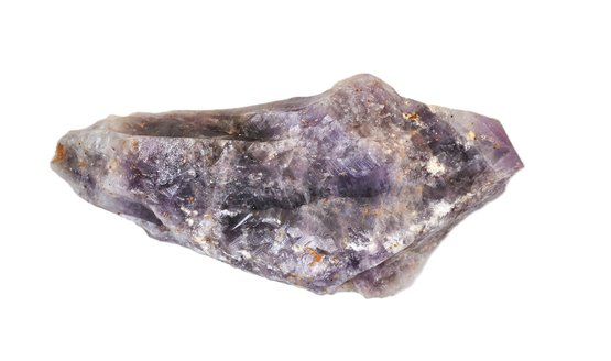 Natural amethyst crystal point with rich purple tones and visible internal formations. Unpolished, as-found specimen with natural surface texture and inclusions.
