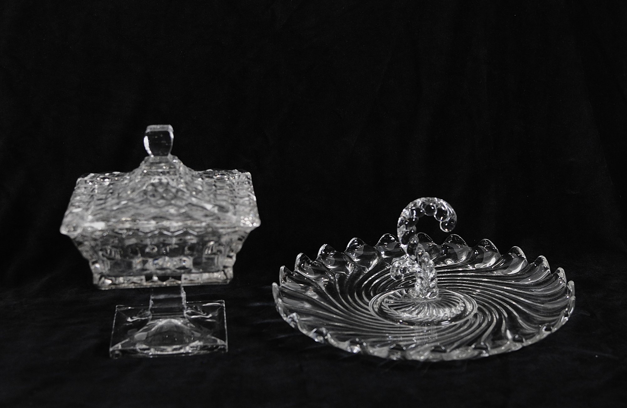 Both pieces catch the light beautifully and make lovely additions to a vintage glass collection or table setting.