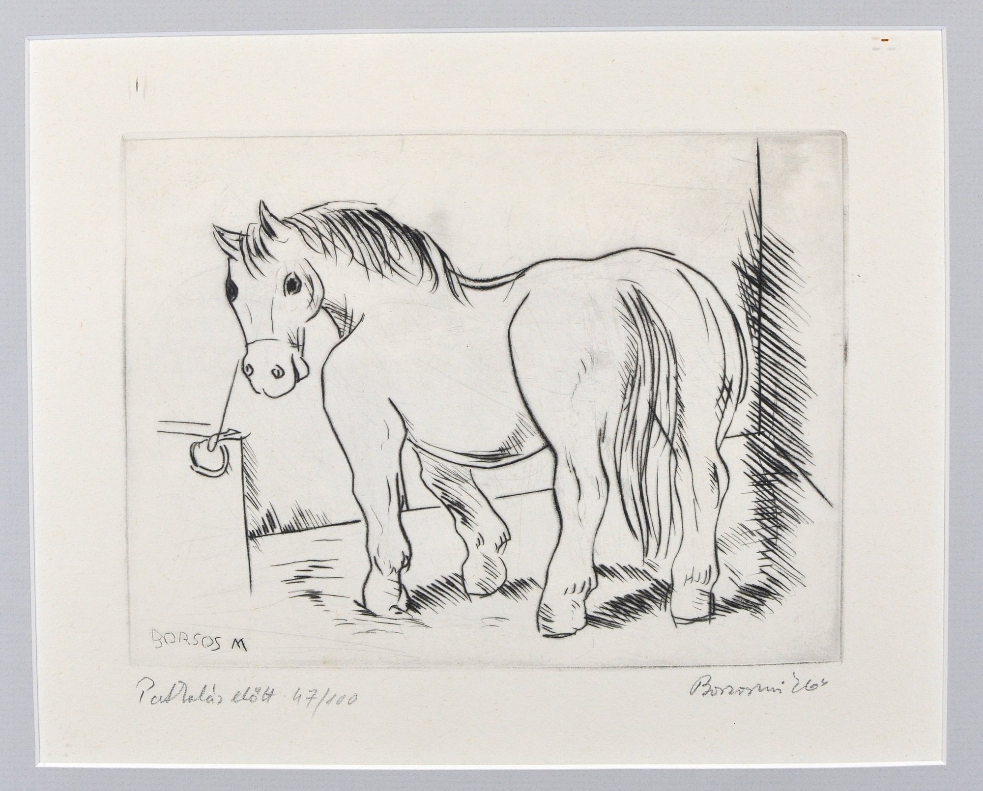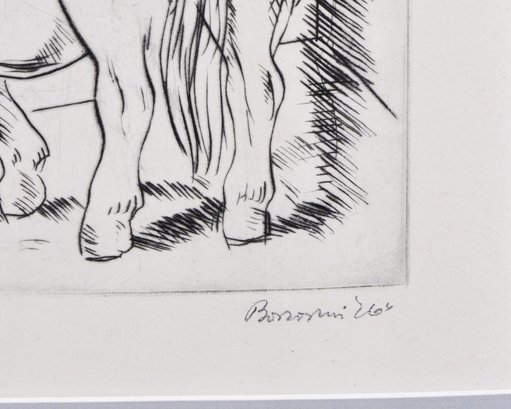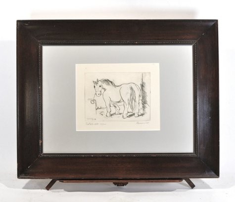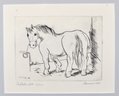 Original vintage etching depicting a standing horse.