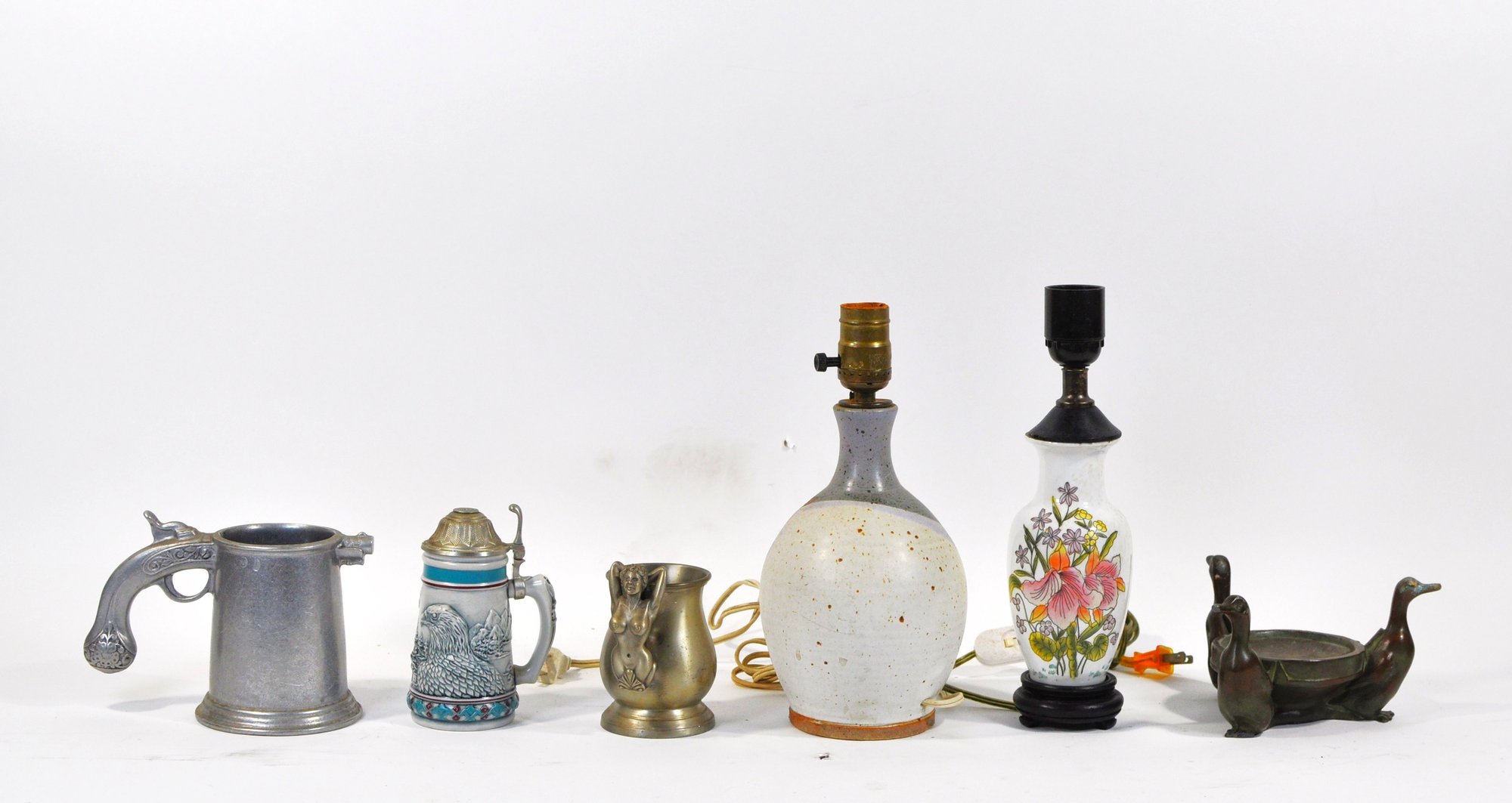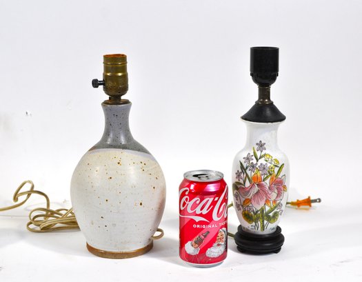 • Two vintage table lamps (ceramic floral and stoneware base) – untested