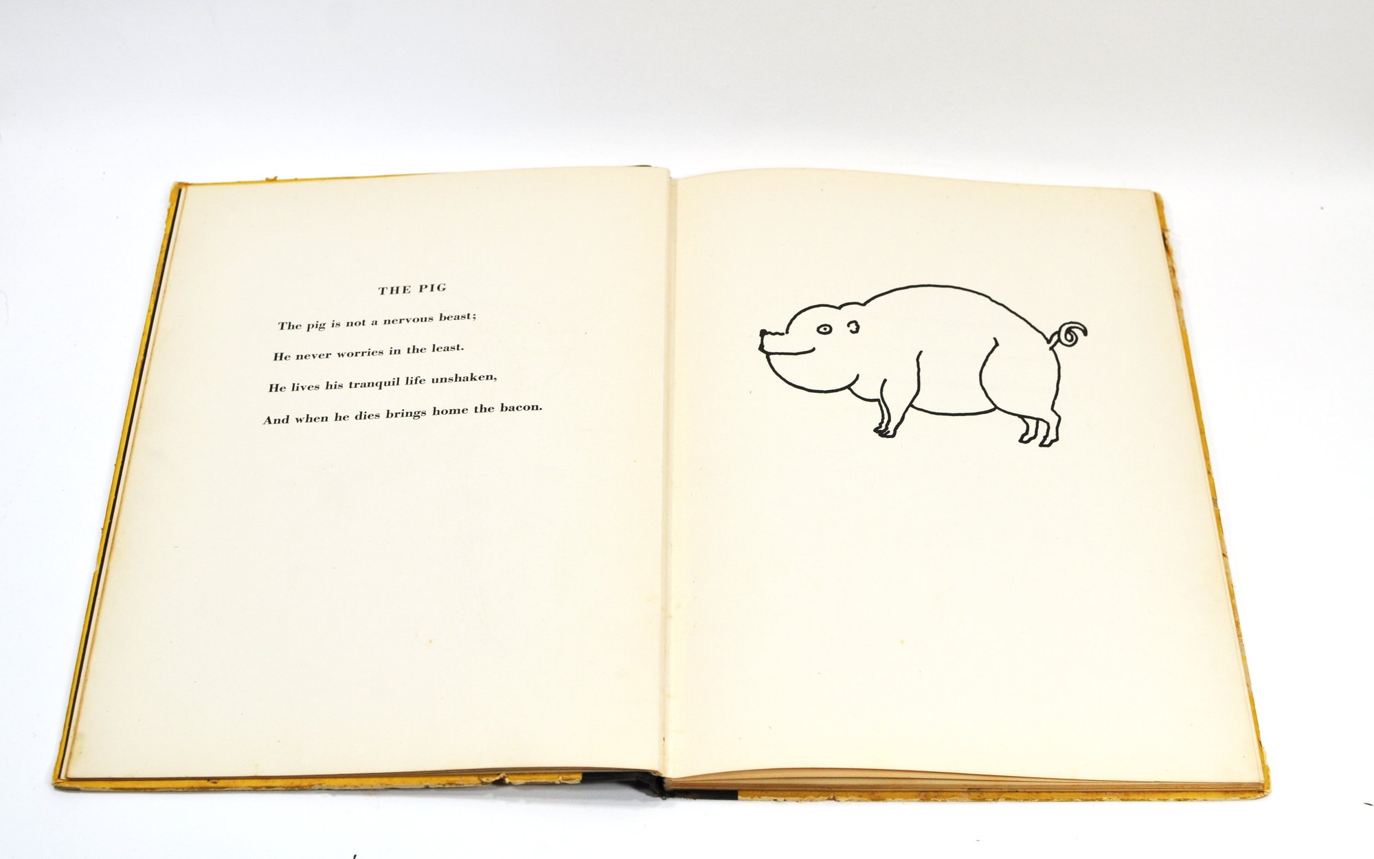 A scarce and provocative illustrated book combining satirical verse with bold, graphic artwork. Notable for its striking yellow pictorial cover featuring a stylized bull and its intentionally irreverent tone. An example of early 20th-century humor that pushed social boundaries of its time.