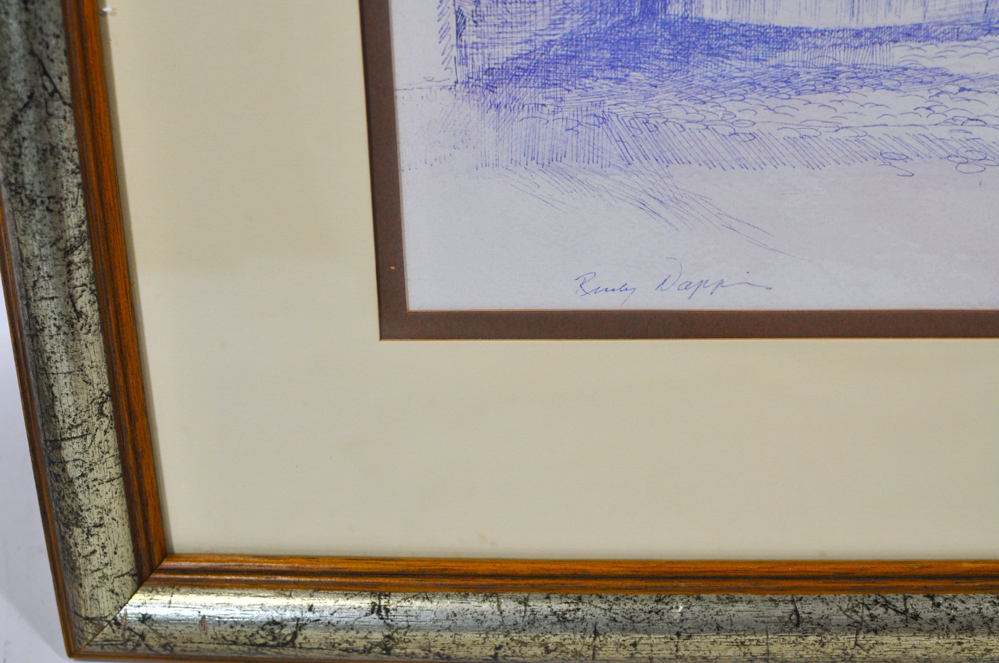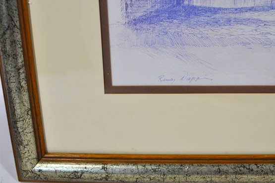 Presented under glass in a vintage frame with cream mat and wood liner.