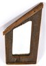 Charming rustic mirror crafted from reclaimed barn wood with a distinctive angled top. Features weathered texture, visible grain, and naturally aged character. Mirror glass shows light wear.