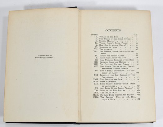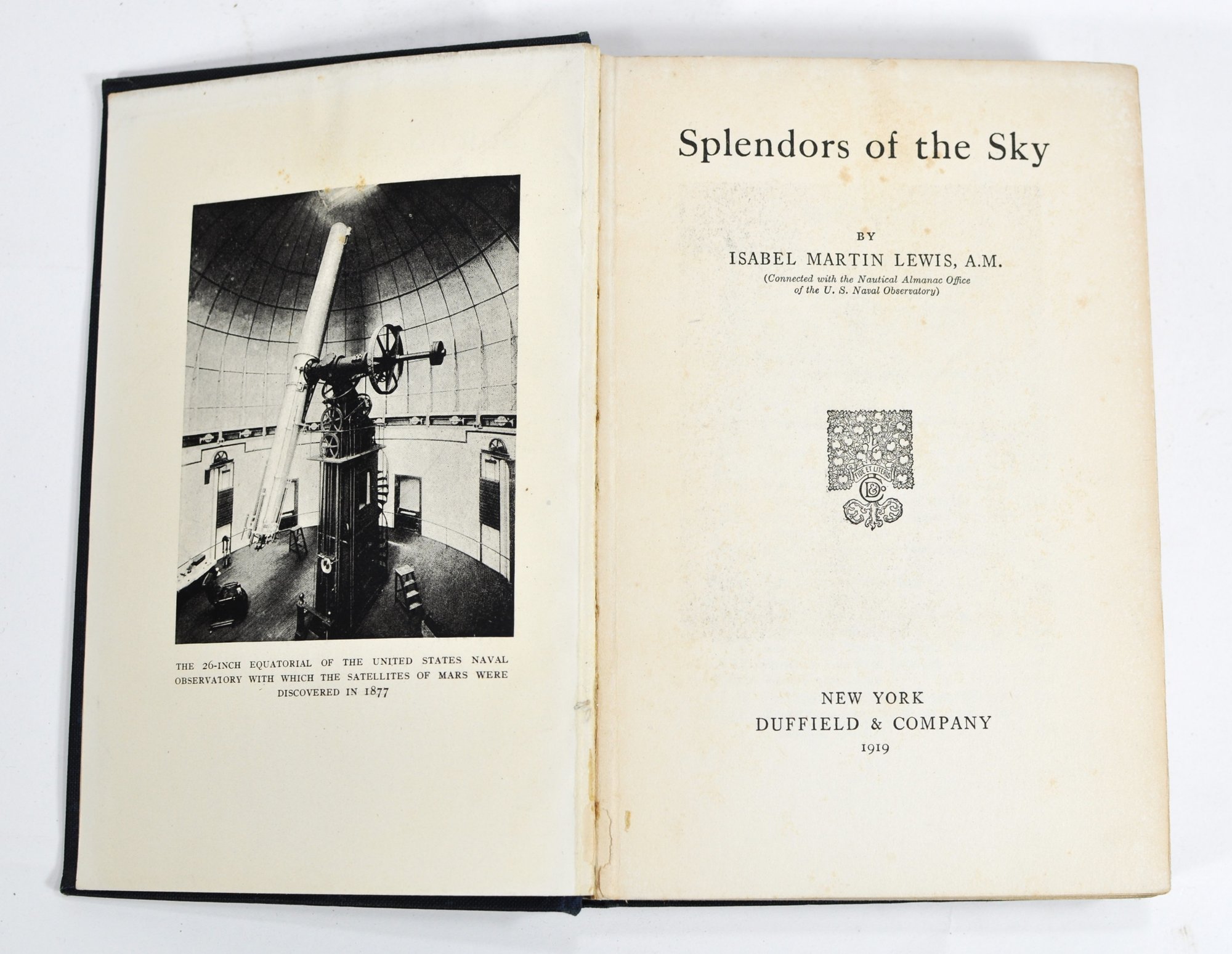 Splendors of the Sky by Isabel Martin Lewis, A.M., published by Duffield & Company, New York, 1919. Original dark blue cloth with gilt lettering to front board and spine.