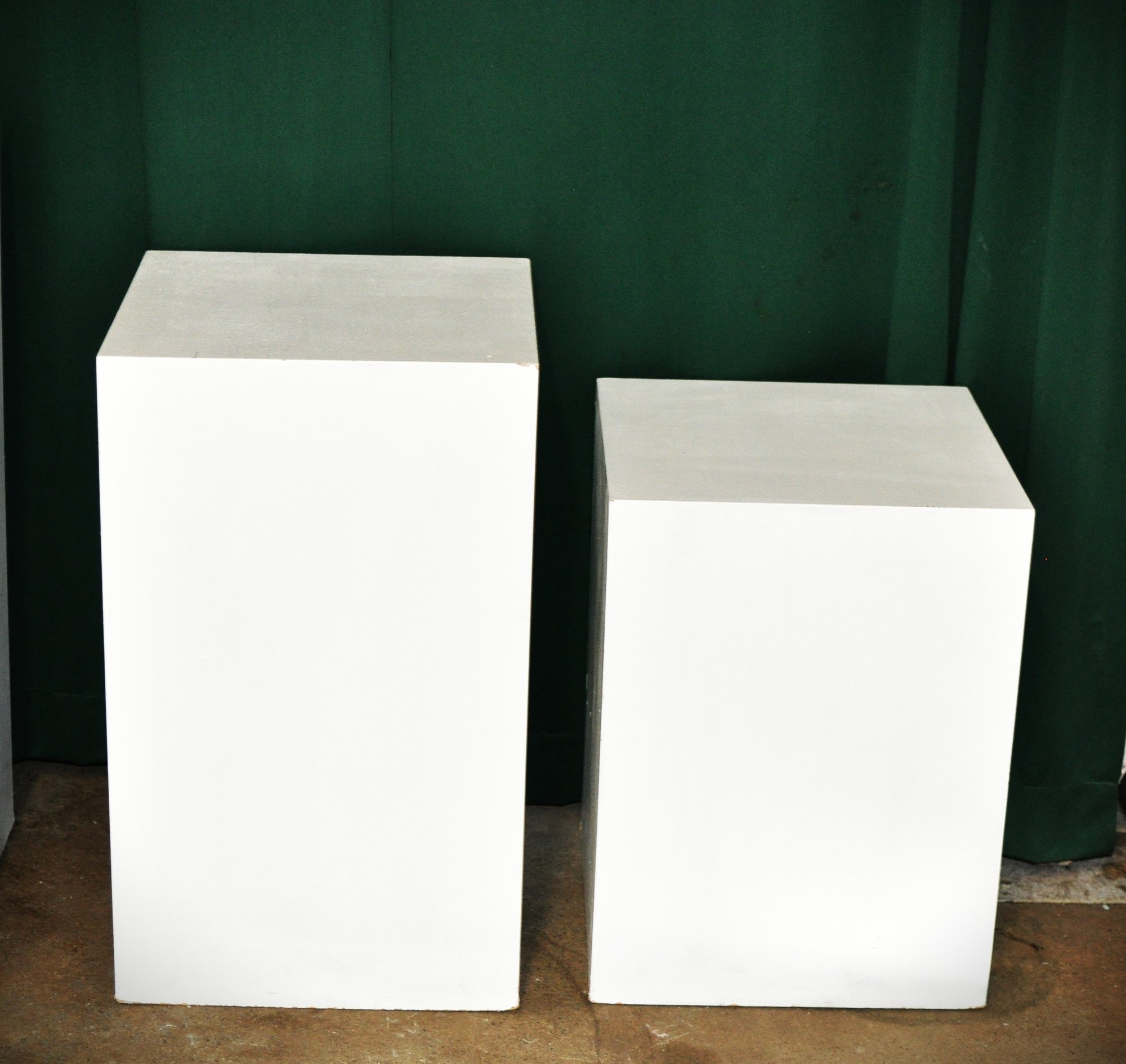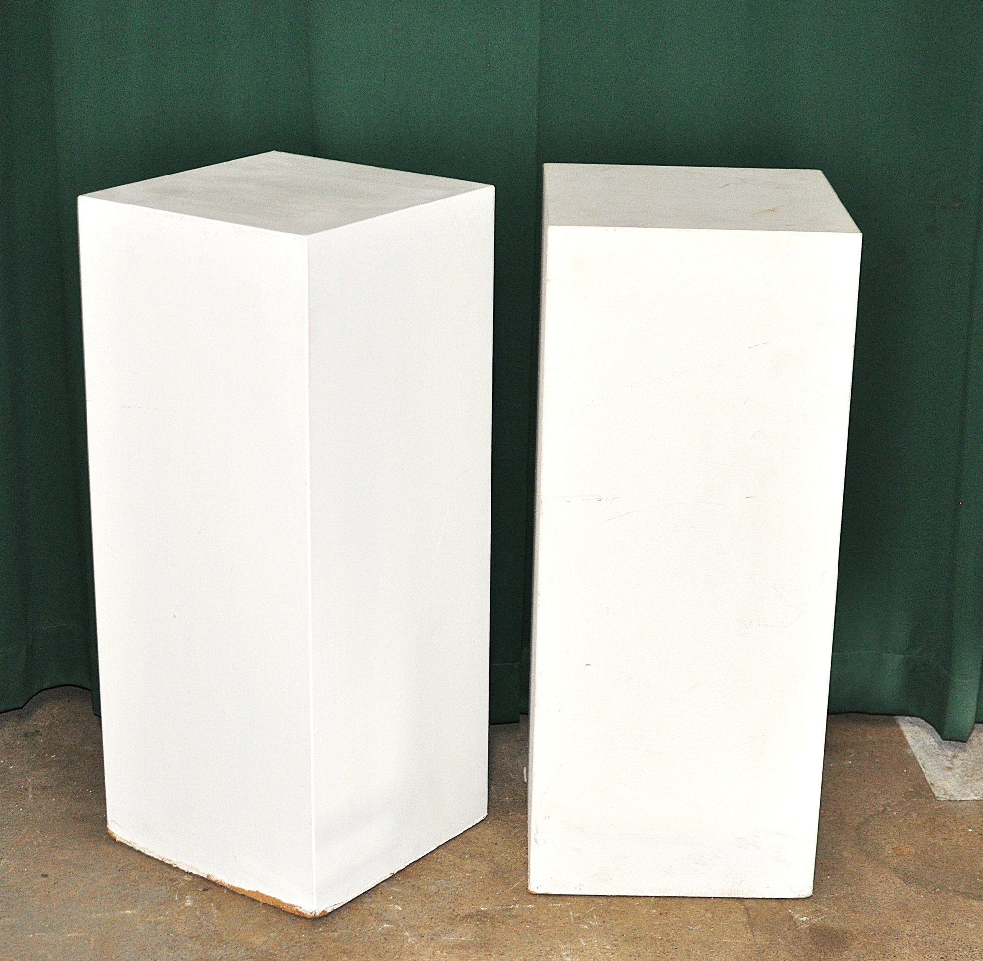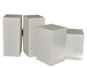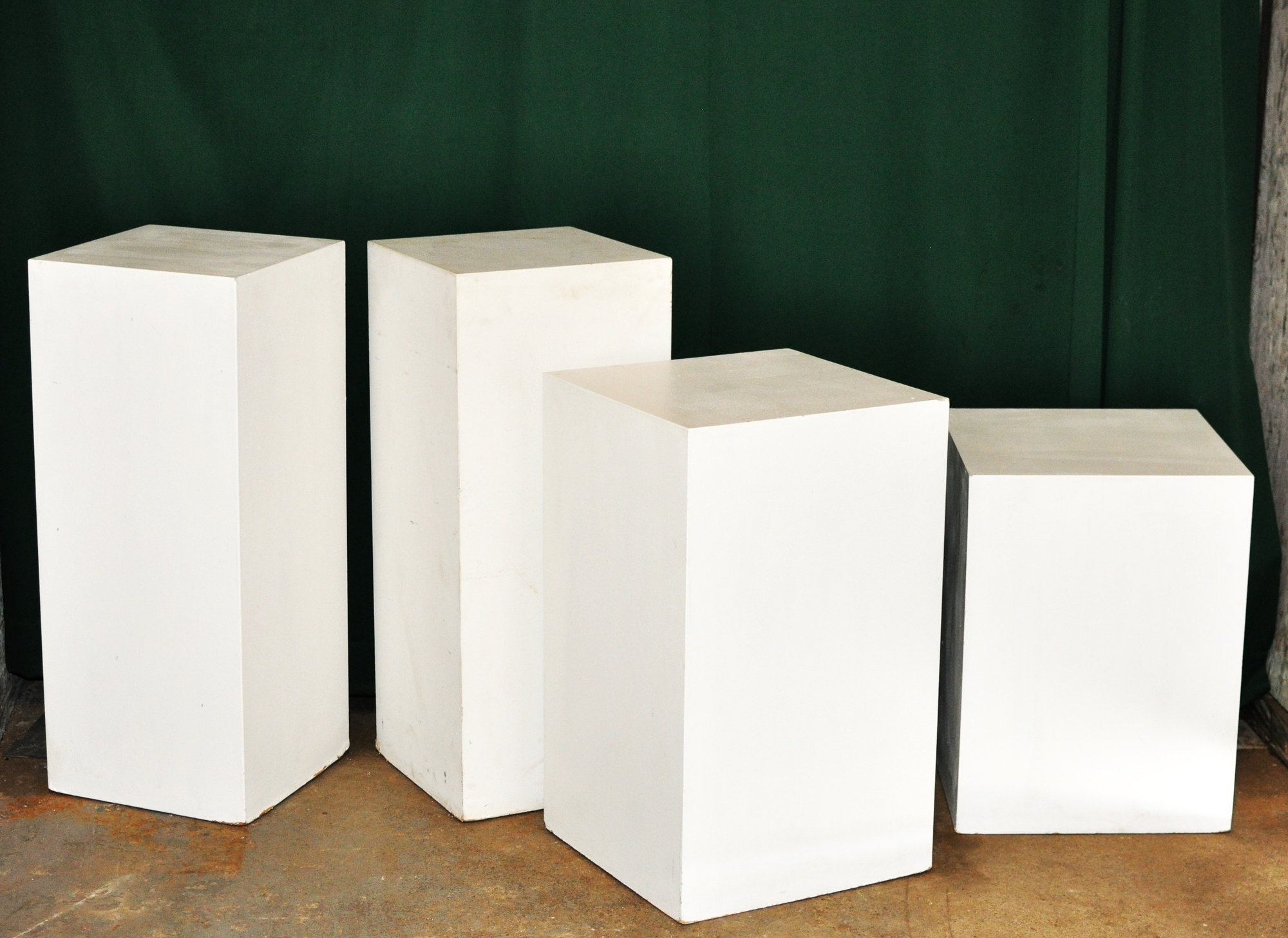 Set of four modern white display pedestals in clean minimalist rectangular form. Finished in matte white, these versatile plinths are perfect for displaying sculpture, ceramics, plants, or gallery décor. Ideal for retail display, art shows, photography staging, or contemporary interiors.