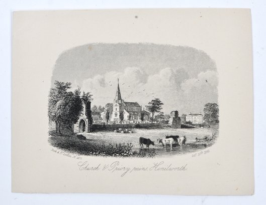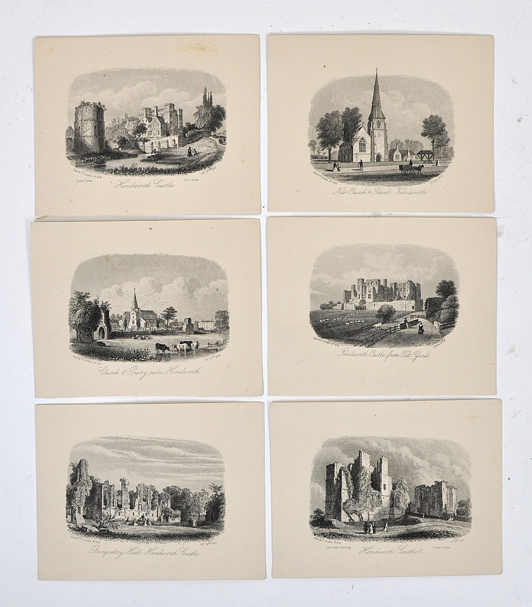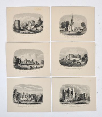 Group of six antique English miniature mid-19th century topographical engravings.