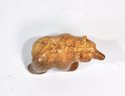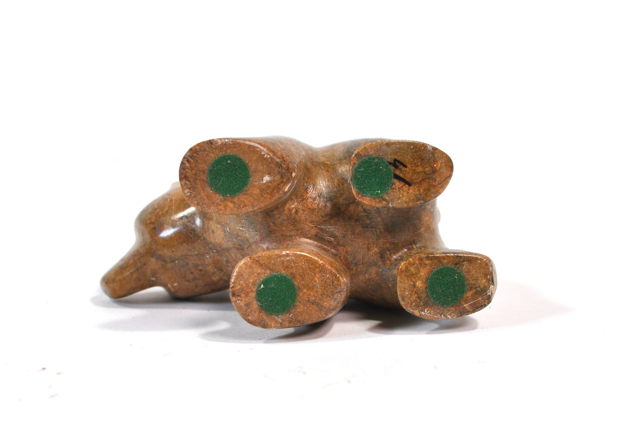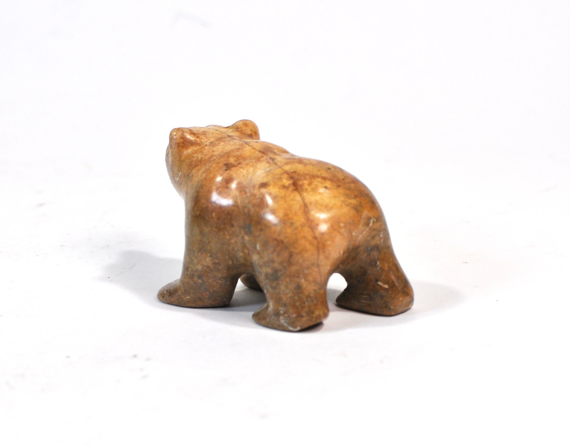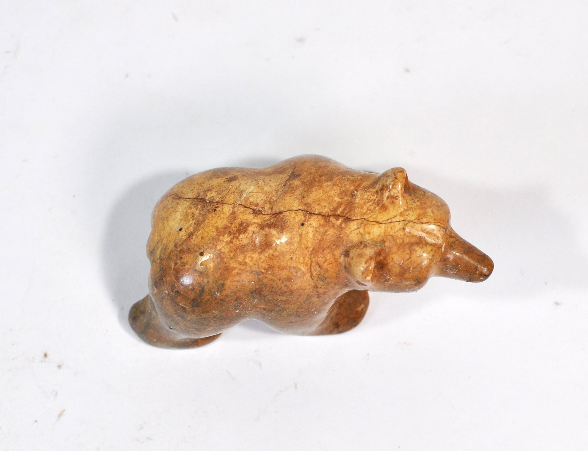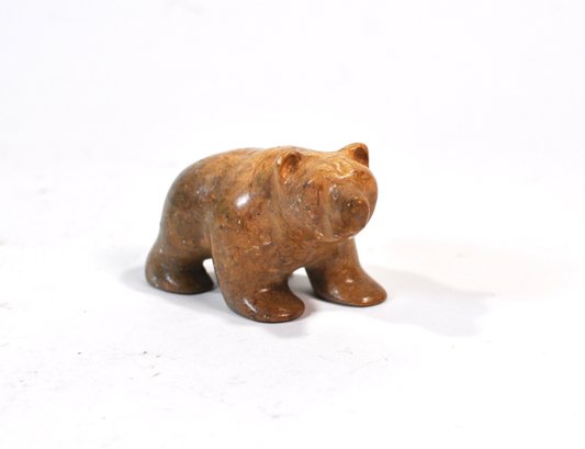 Small hand-carved stone bear figure with polished surface and natural mottled brown coloration.