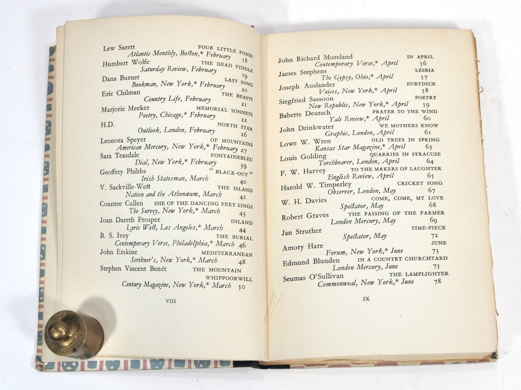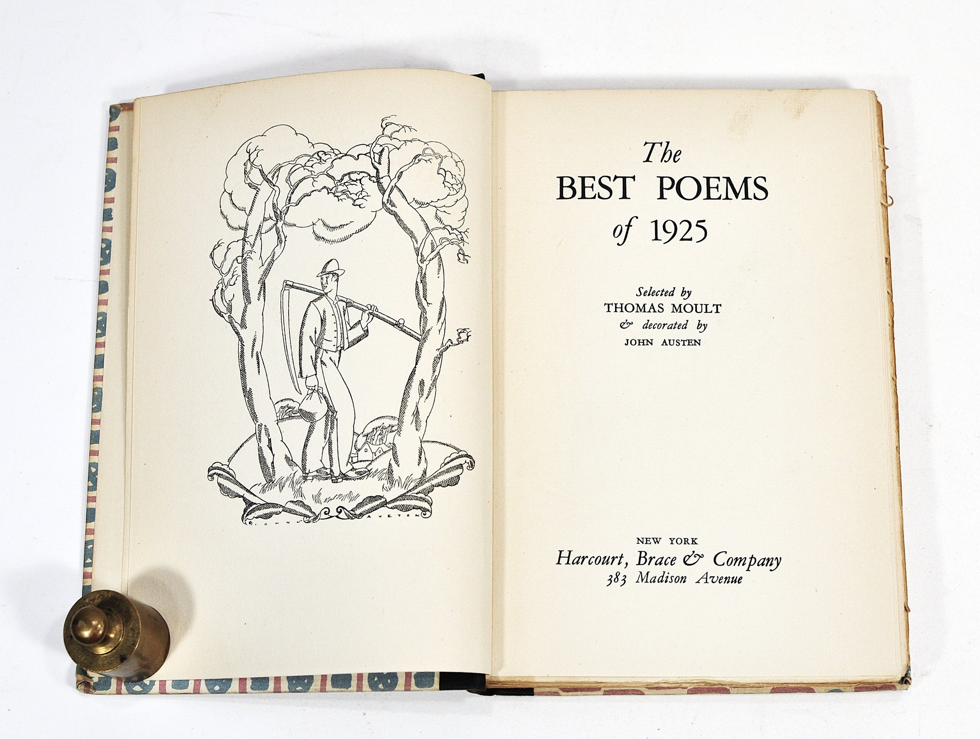 1925 poetry anthology selected by Thomas Moult, illustrated by John Austen. Harcourt, Brace & Company, New York. Decorative patterned boards with cloth spine.