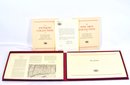Elegant 1987 presentation portfolio by The Hartford Steam Boiler Inspection and Insurance Co., featuring The Antiques Collection, The Fine Arts Collection, and Plates booklets, plus a signed letter from President Wilson Wilde. Includes high-quality color plates of American artworks by Weir, Hassam, Metcalf, Bridges, and others. Presented in a red linen case with embossed seal.