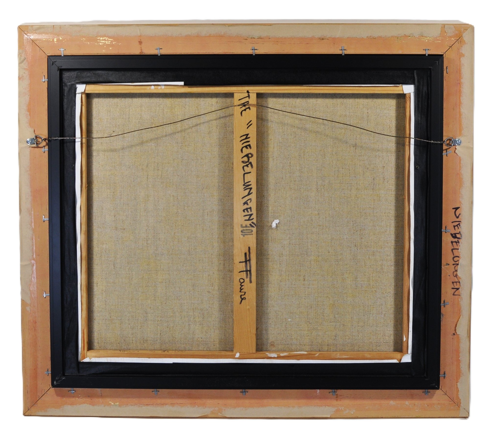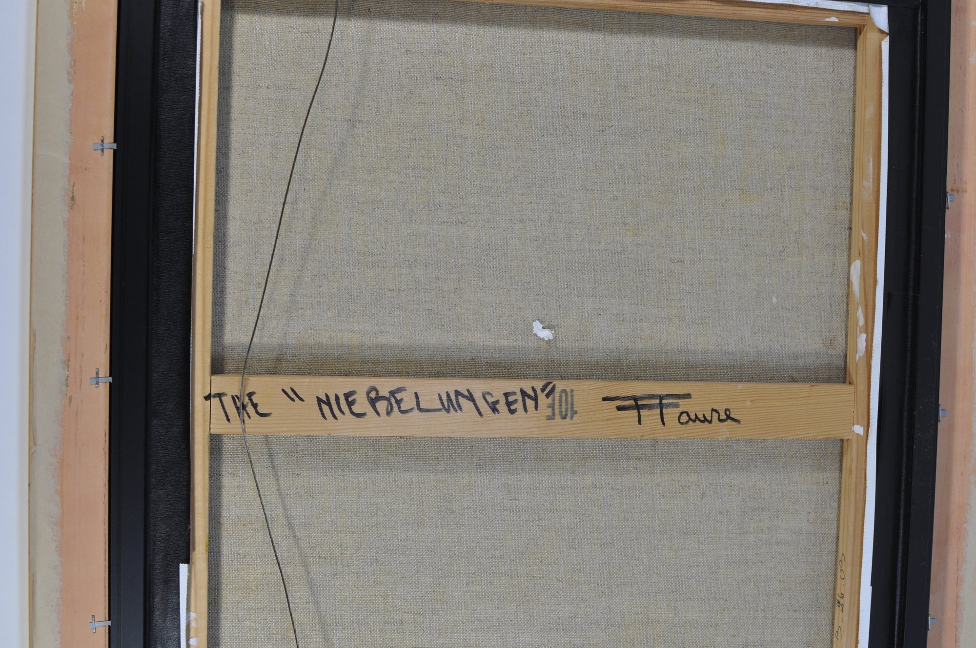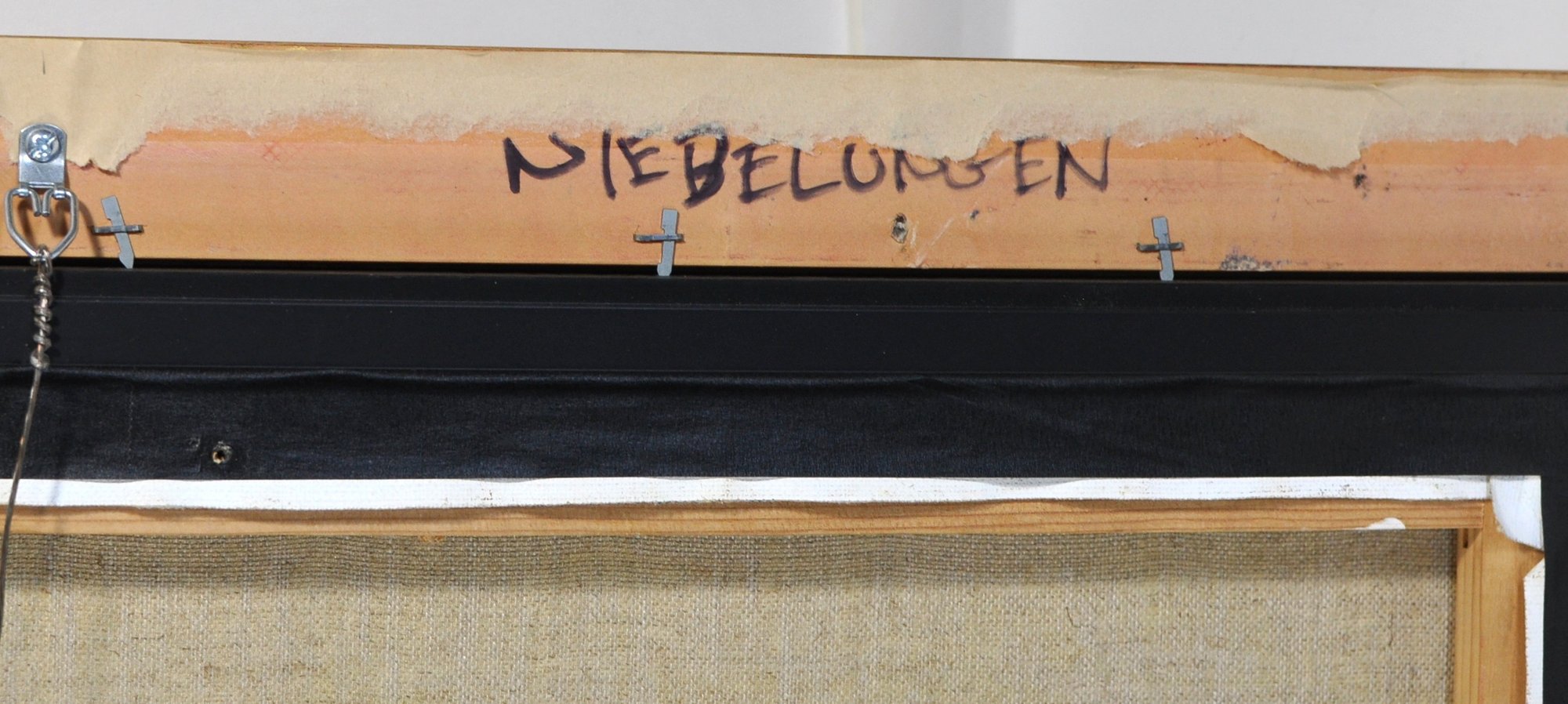 The reverse of the canvas bears the handwritten title "NIEBELUNGEN" along with the artist’s name and characteristic monogram, confirming authenticity.