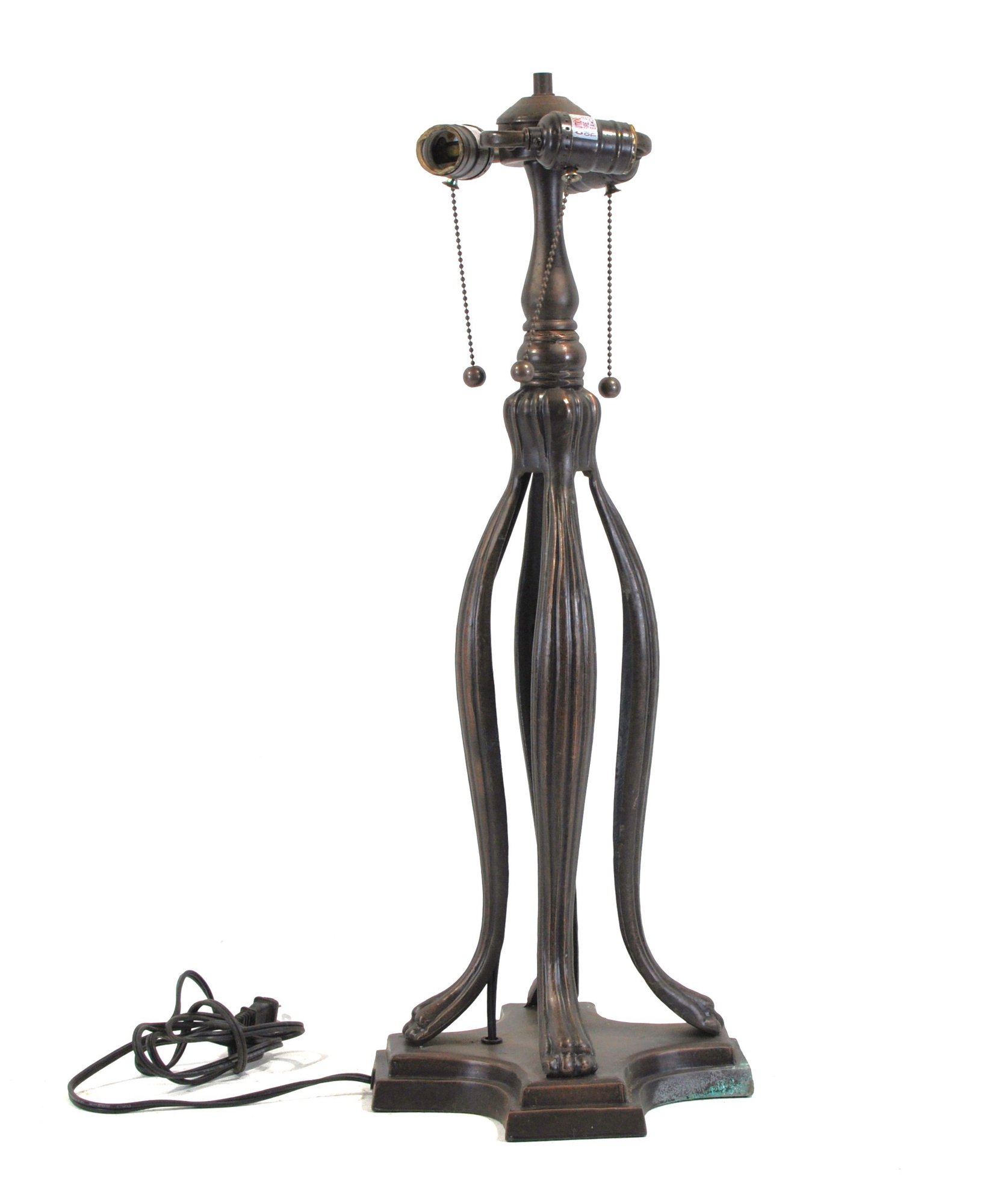 Elegant vintage bronze-finished table lamp base featuring four stylized clawed legs on a cross-form plinth.