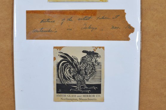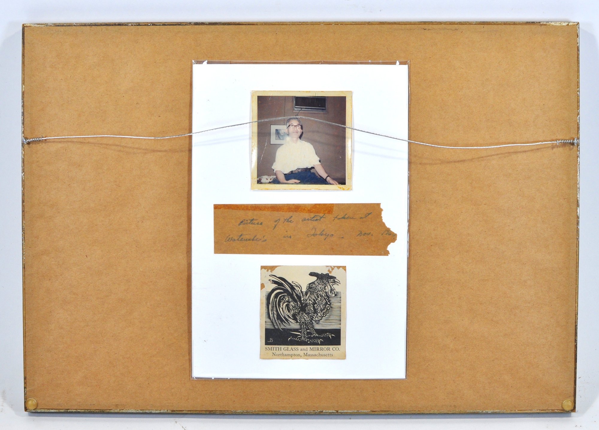 Presented in a gilt frame with white mat, ready to hang. Back includes an old photo and note referencing a lecture at Watanabe’s in Tokyo, adding interesting provenance ephemera.