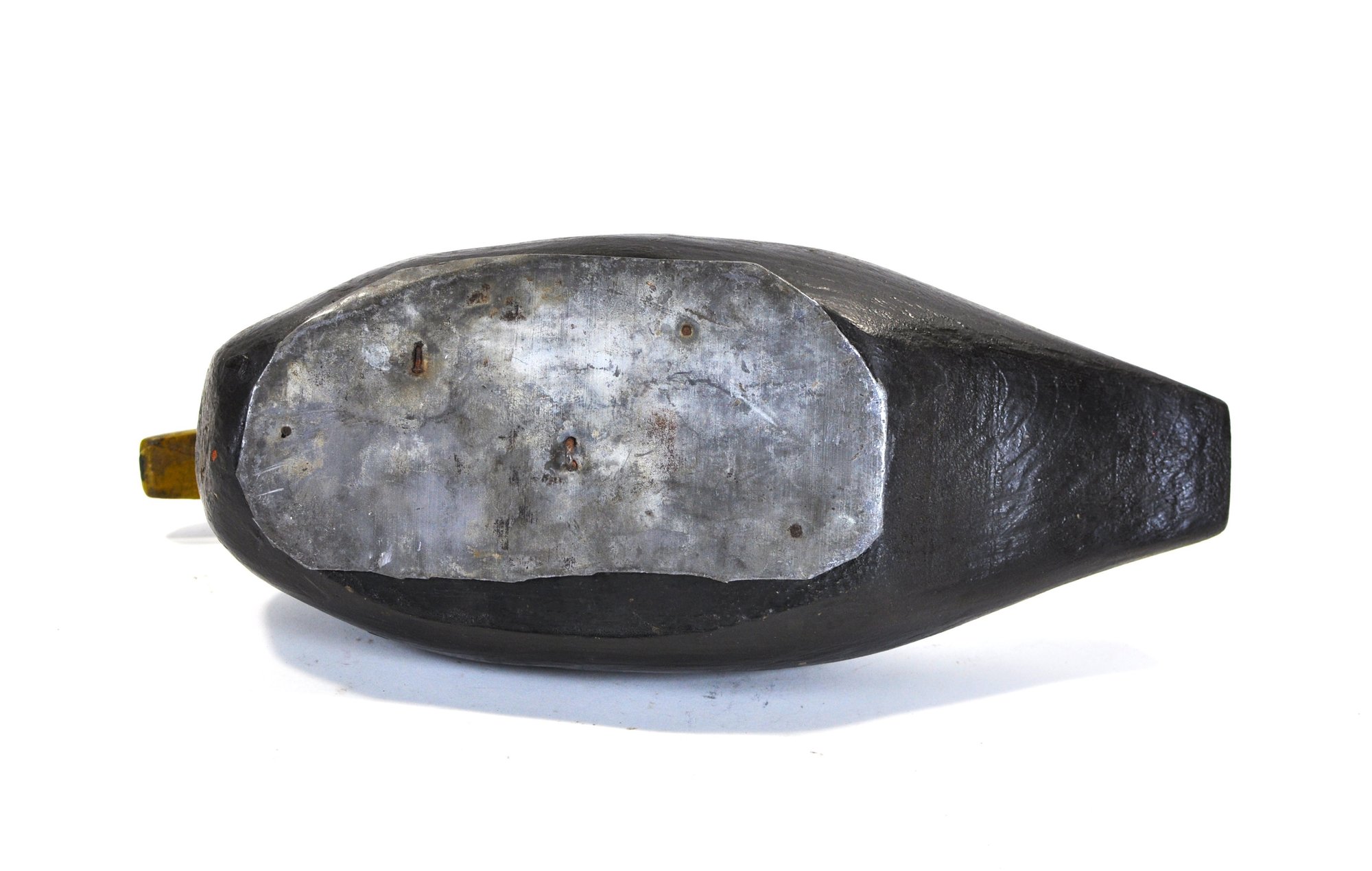 The underside retains a metal weight plate, indicating functional use as a working decoy rather than purely decorative form.
