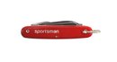 The handle is finished in classic red scales, marked “sportsman” on one side and bearing a shield emblem on the other.
