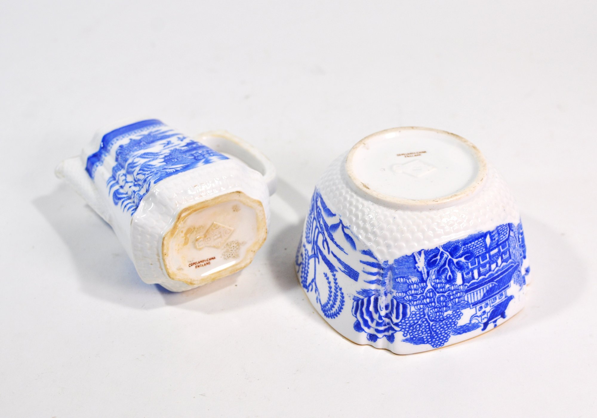 Each piece bears an English registration mark on the base, indicating manufacture in England, likely late 19th to early 20th century.