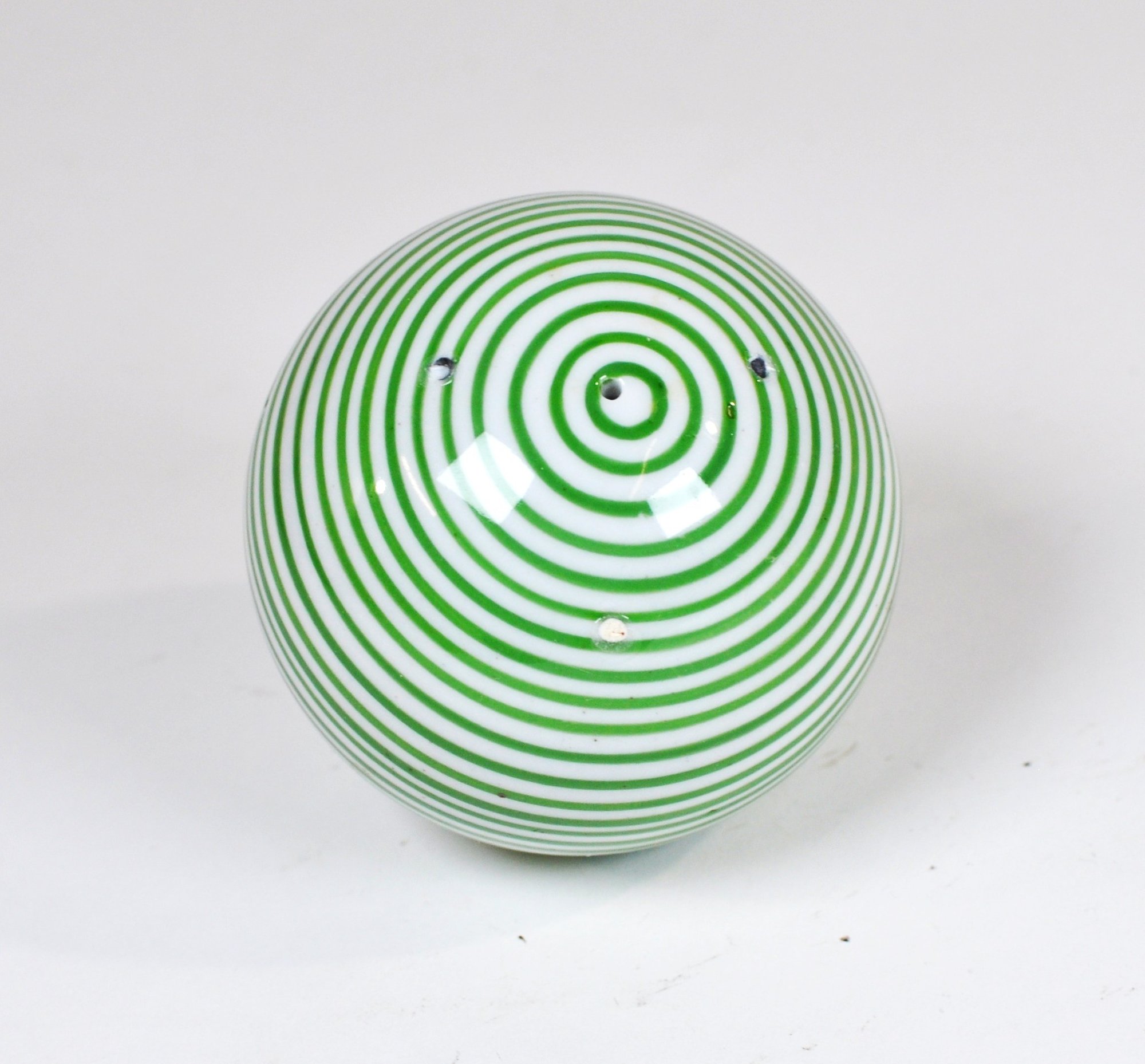 Likely mid-20th century decorative glass, possibly produced as a display orb, paperweight, or accent object. The spiral pattern is evenly executed and visually striking from all angles.