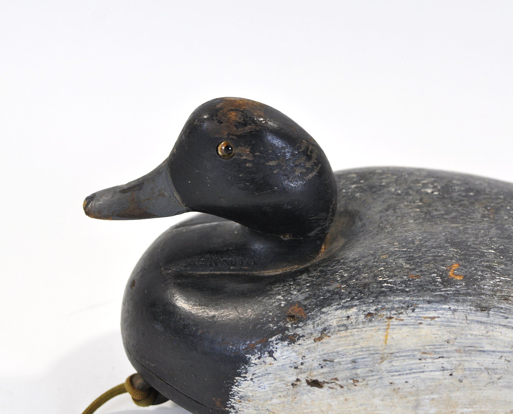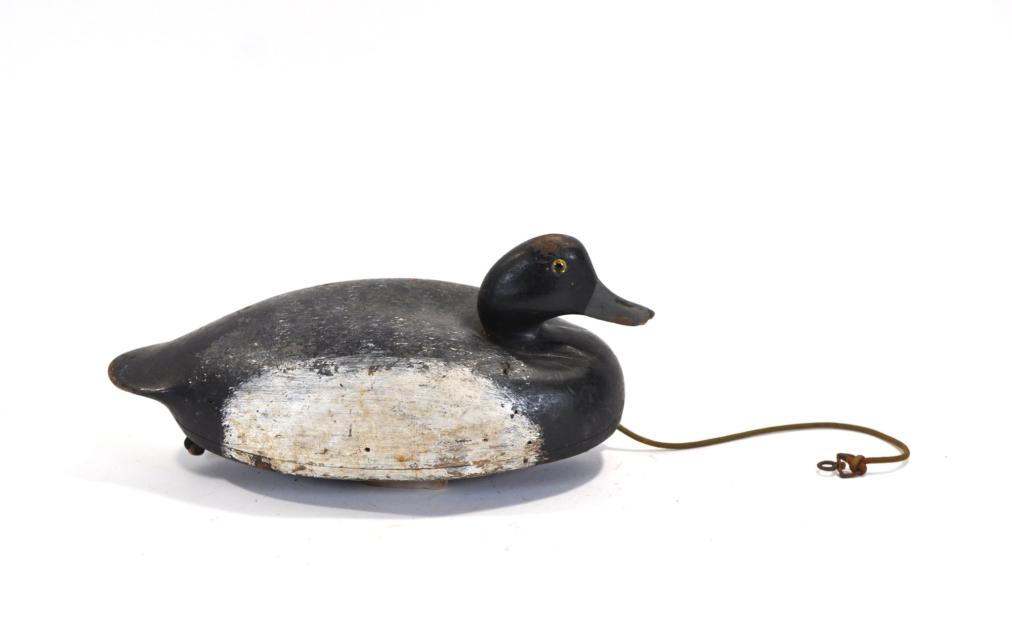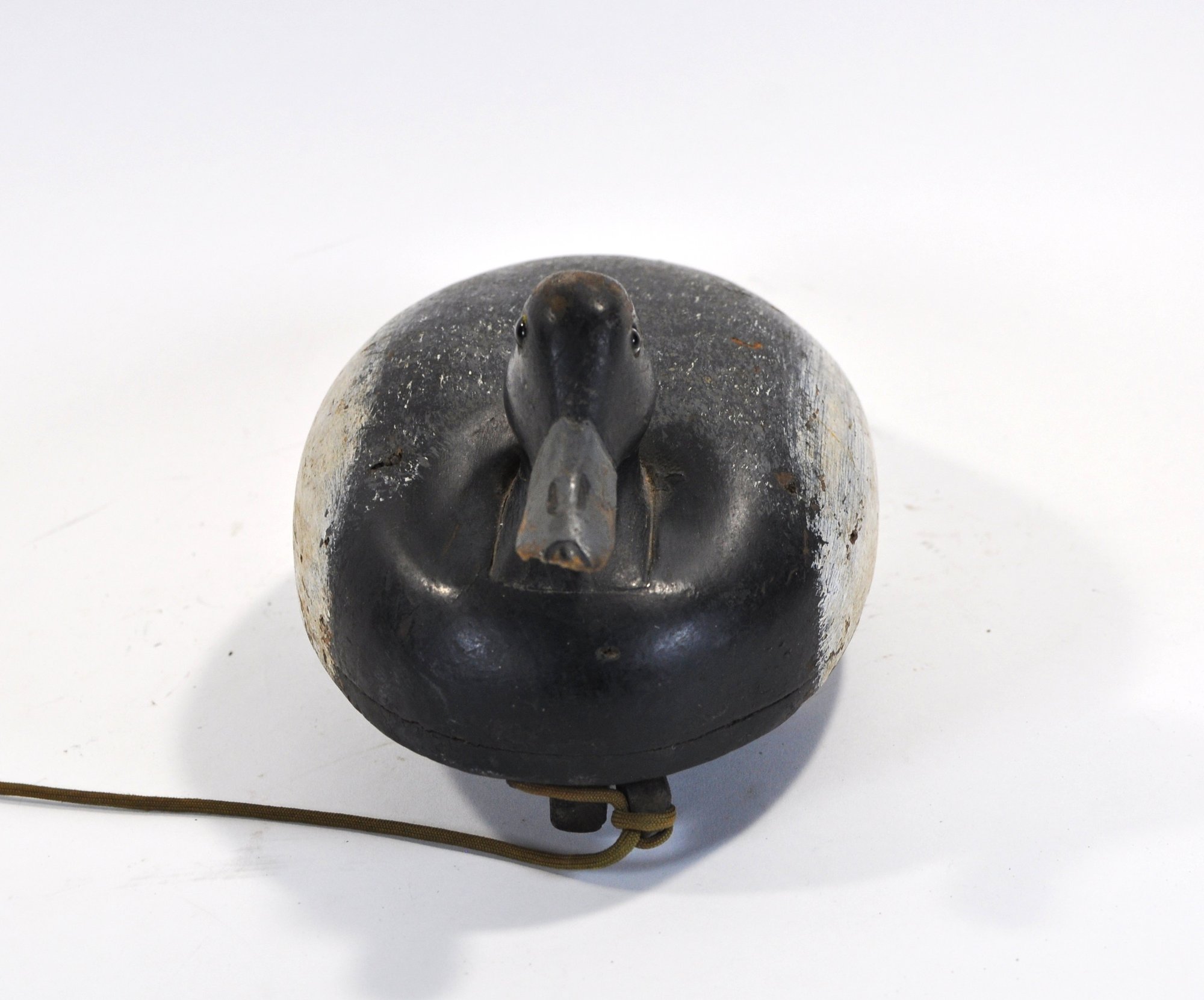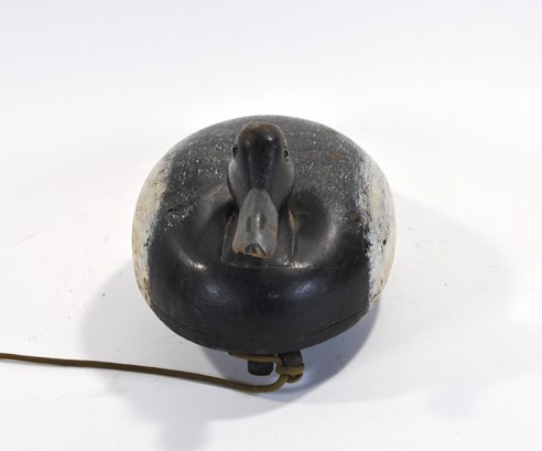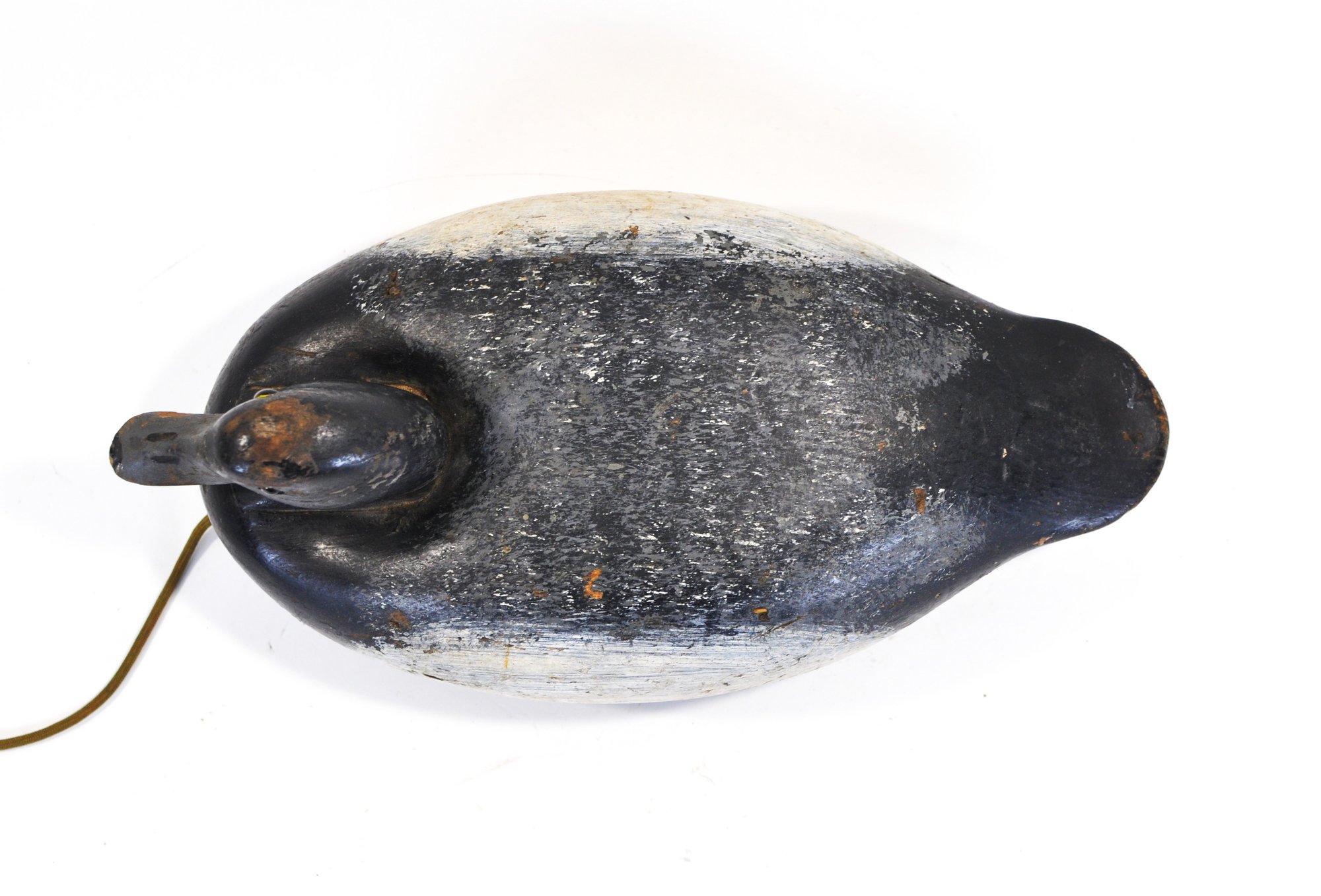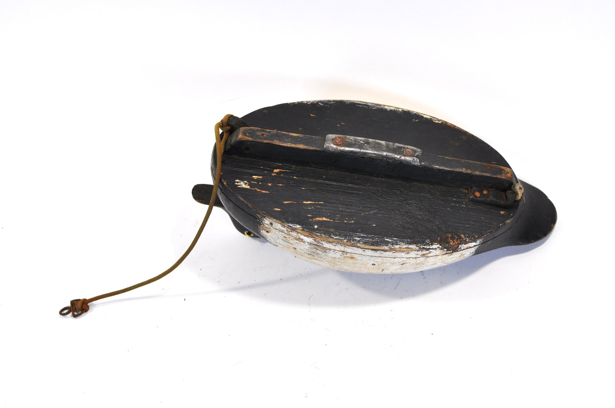 Condition: Noticeable paint wear, surface marks, and age-related patina consistent with prolonged field use. Keel and line remain attached. Displays well as a vintage hunting decoy.