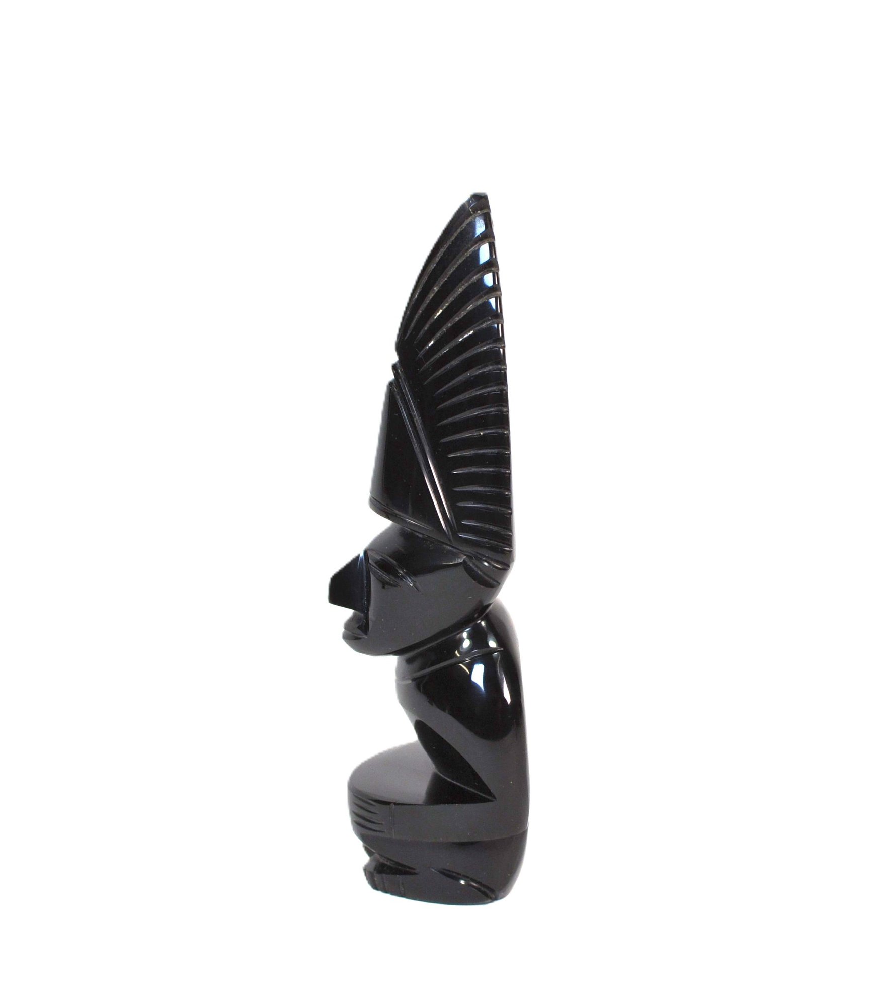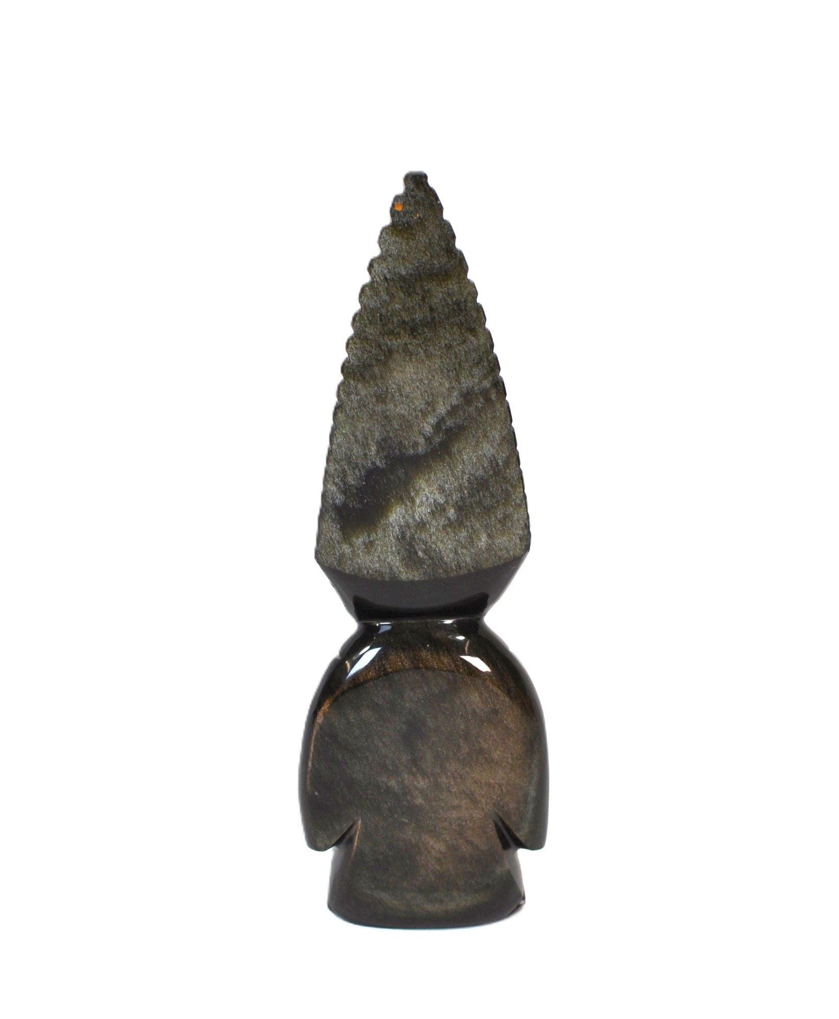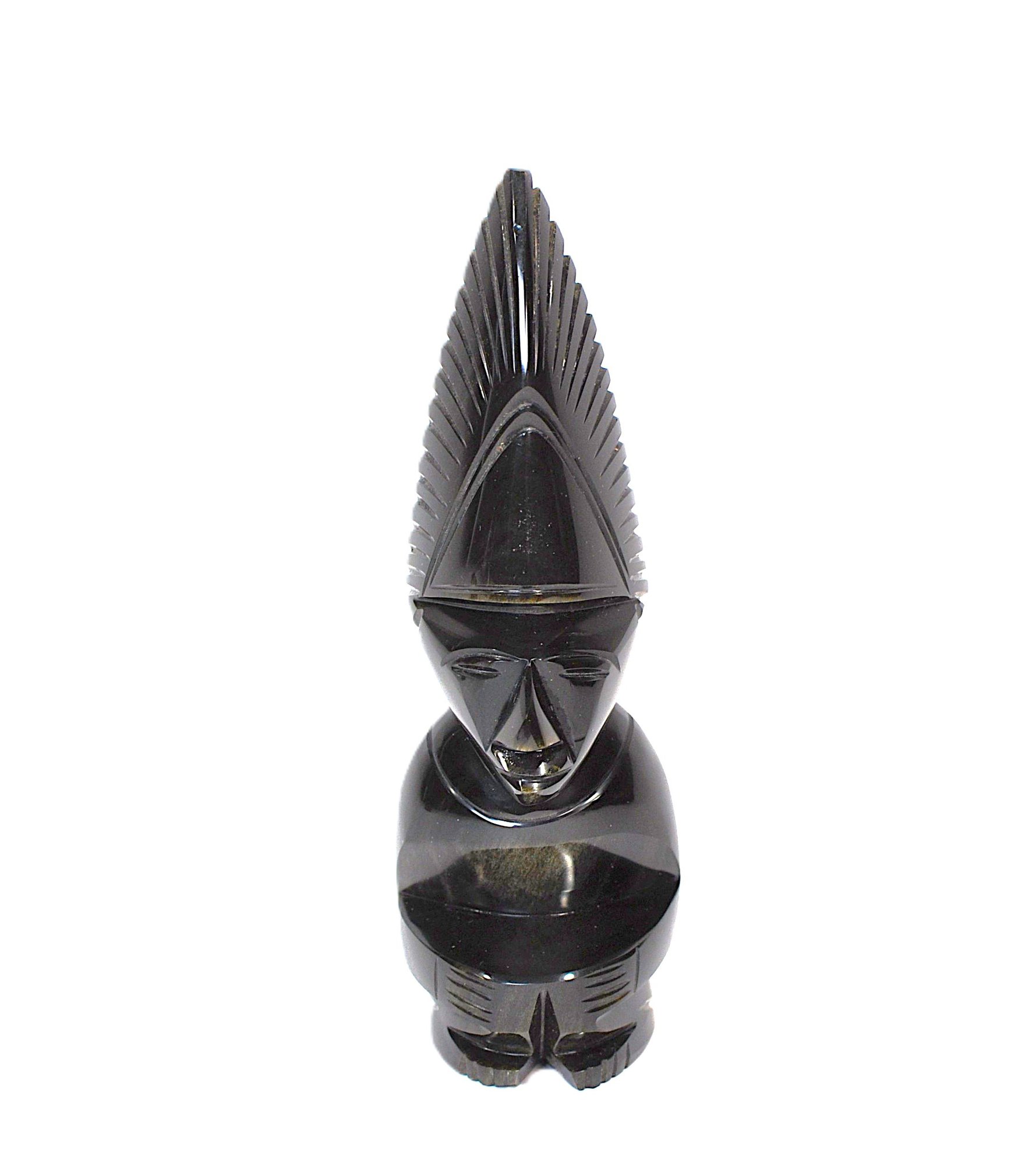Carved warrior figure from natural gold sheen obsidian (volcanic glass).