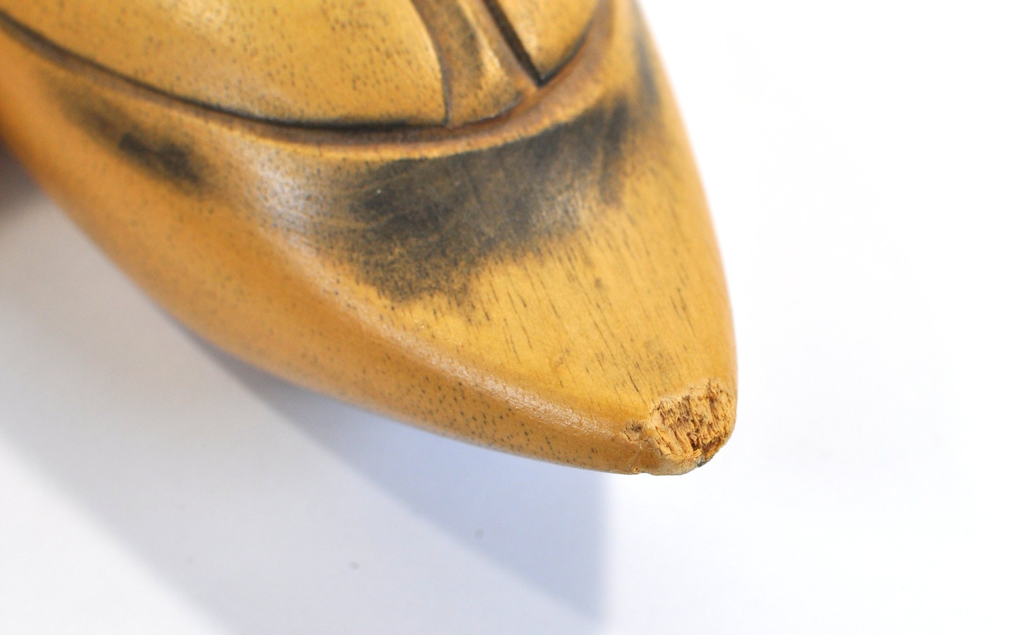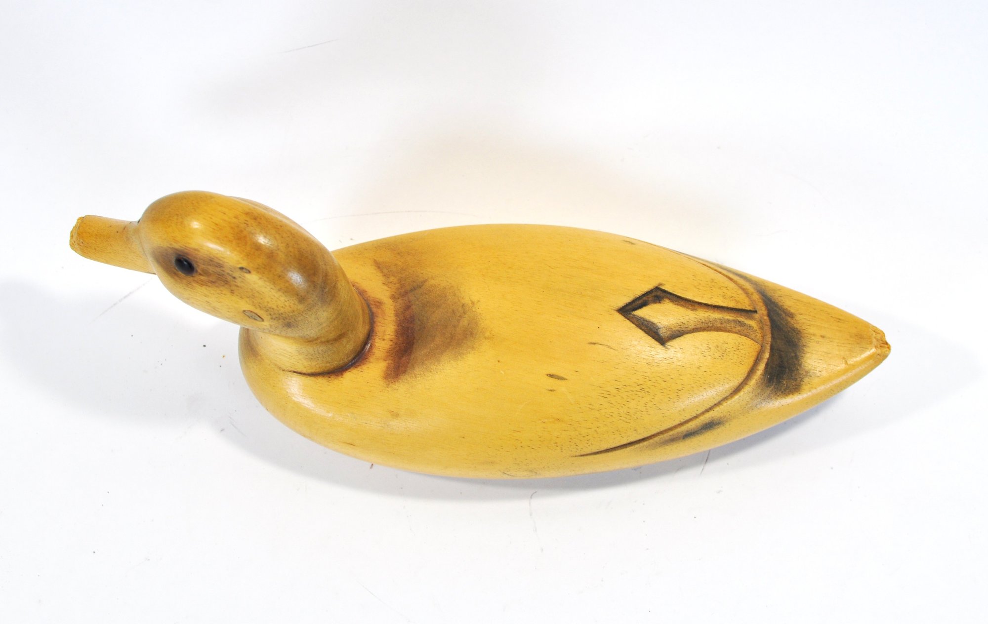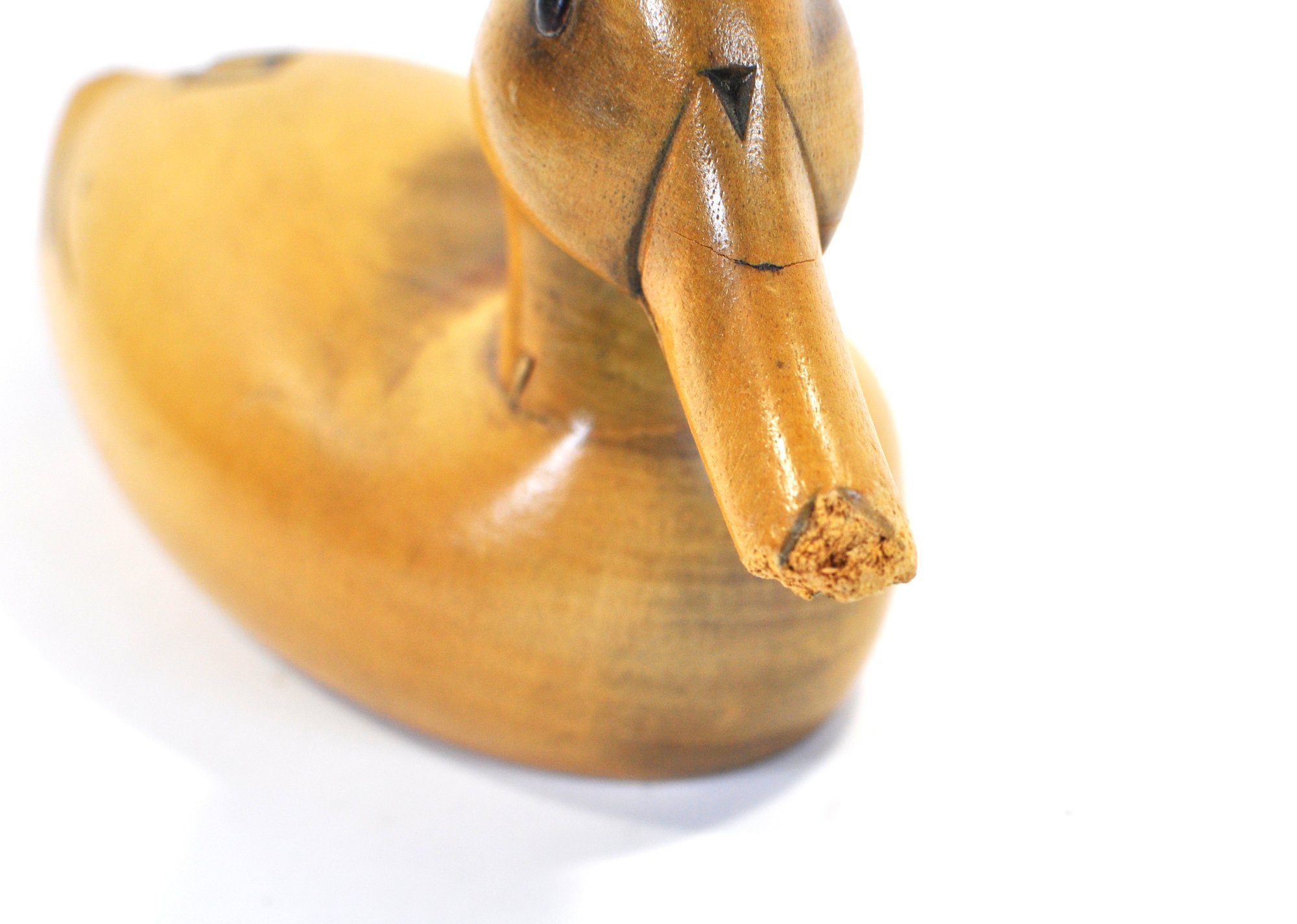 Condition: vintage condition with expected wear. Loss to the tip of the bill and tail, light surface marks. Displays well.