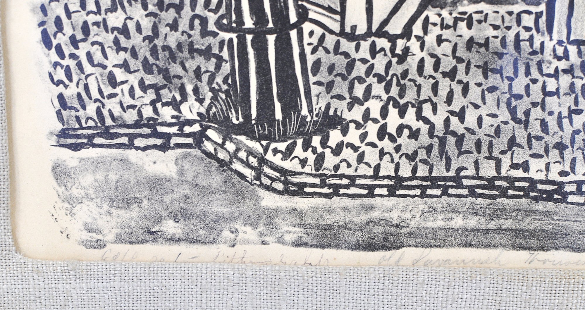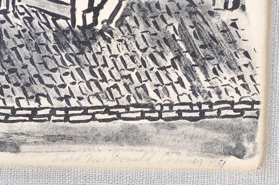 Signed and dated 1951 lower right (illegible artist name). Pencil inscription along bottom.
