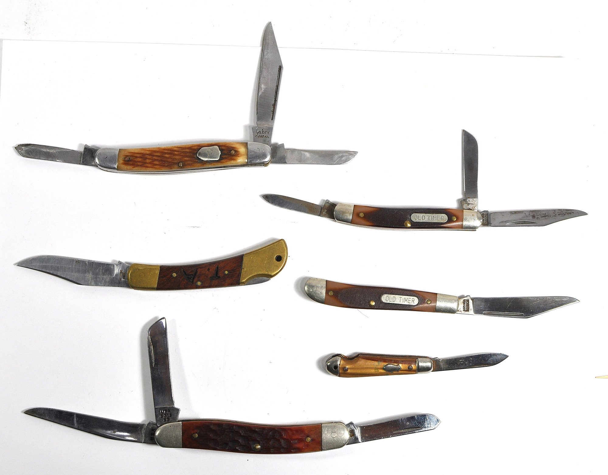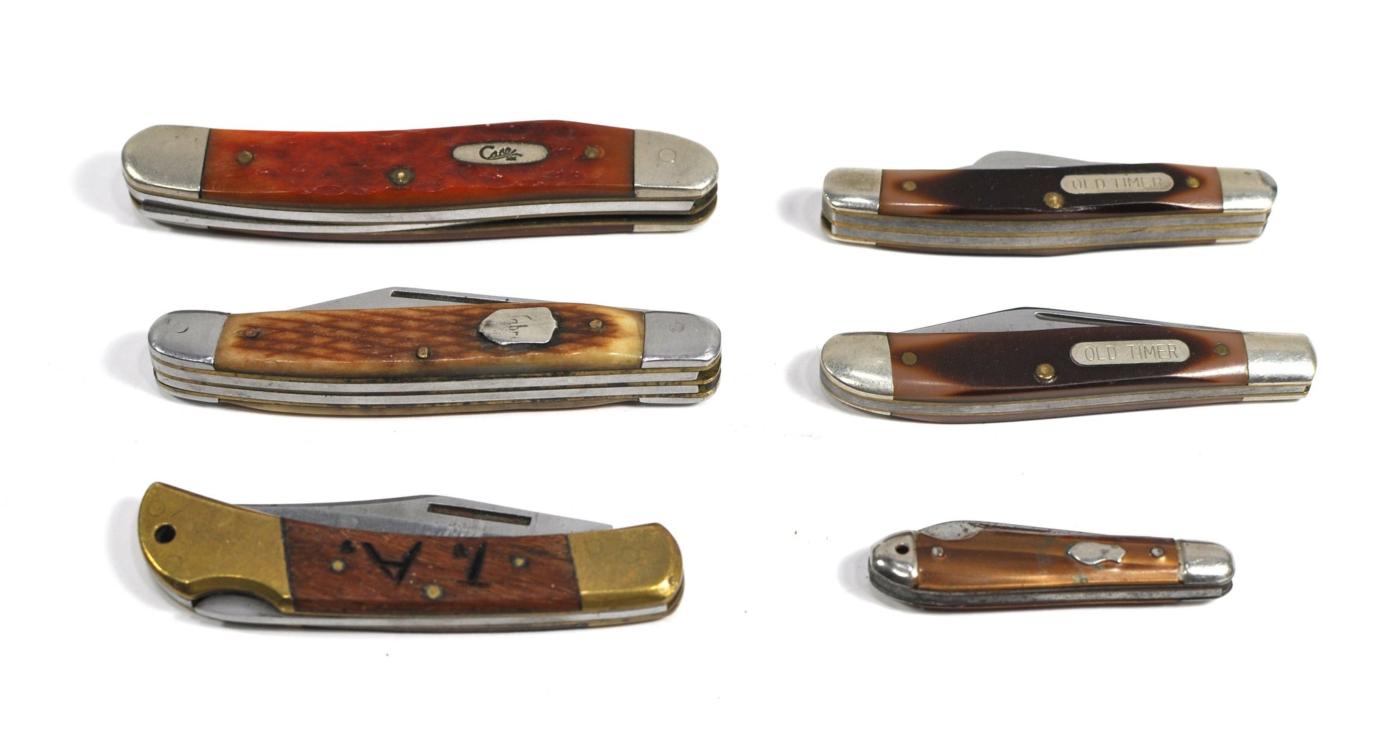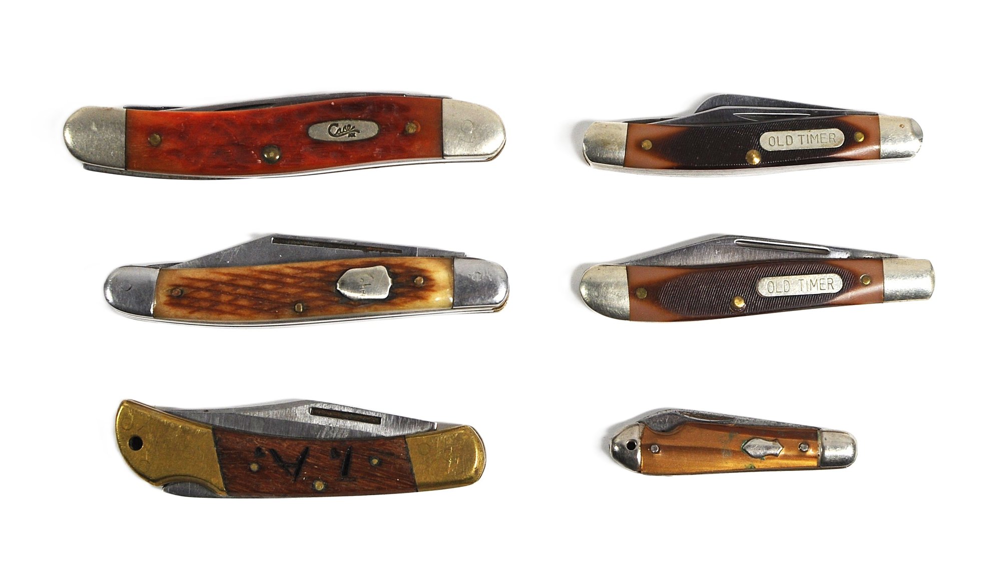 Mixed lot of vintage folding pocket knives including examples by Case, Old Timer, Schrade knife.