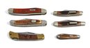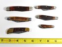 Features jigged bone and faux tortoiseshell handles with steel blades. Various sizes and patterns.