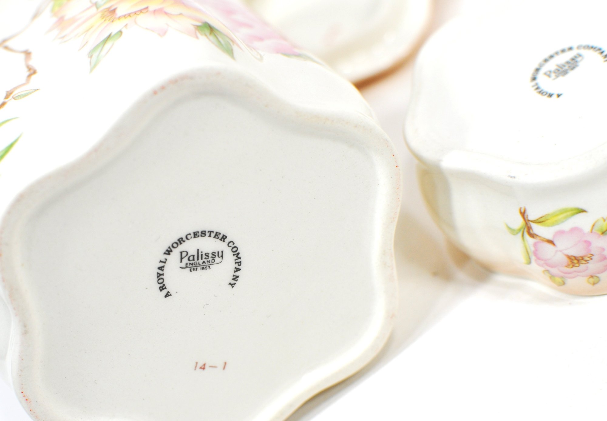 Finished in a warm ivory ground with delicate shading, typical of mid-to-late 20th century English decorative porcelain. Marked to the underside: Royal Worcester Company – Palissy England.
