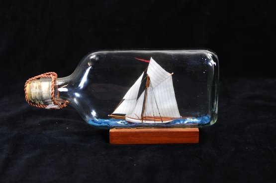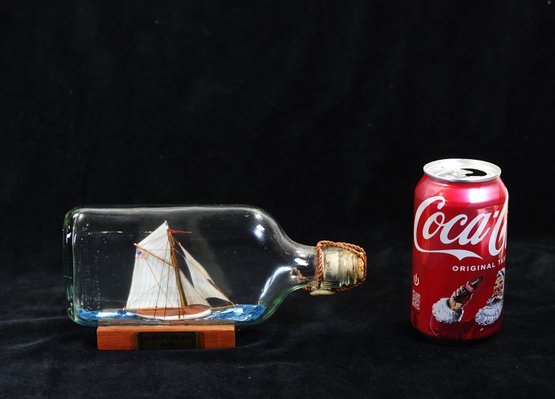 A classic piece of nautical decor, appreciated for its remarkable craftsmanship and the mystery of how the ship was assembled inside the narrow-necked bottle.