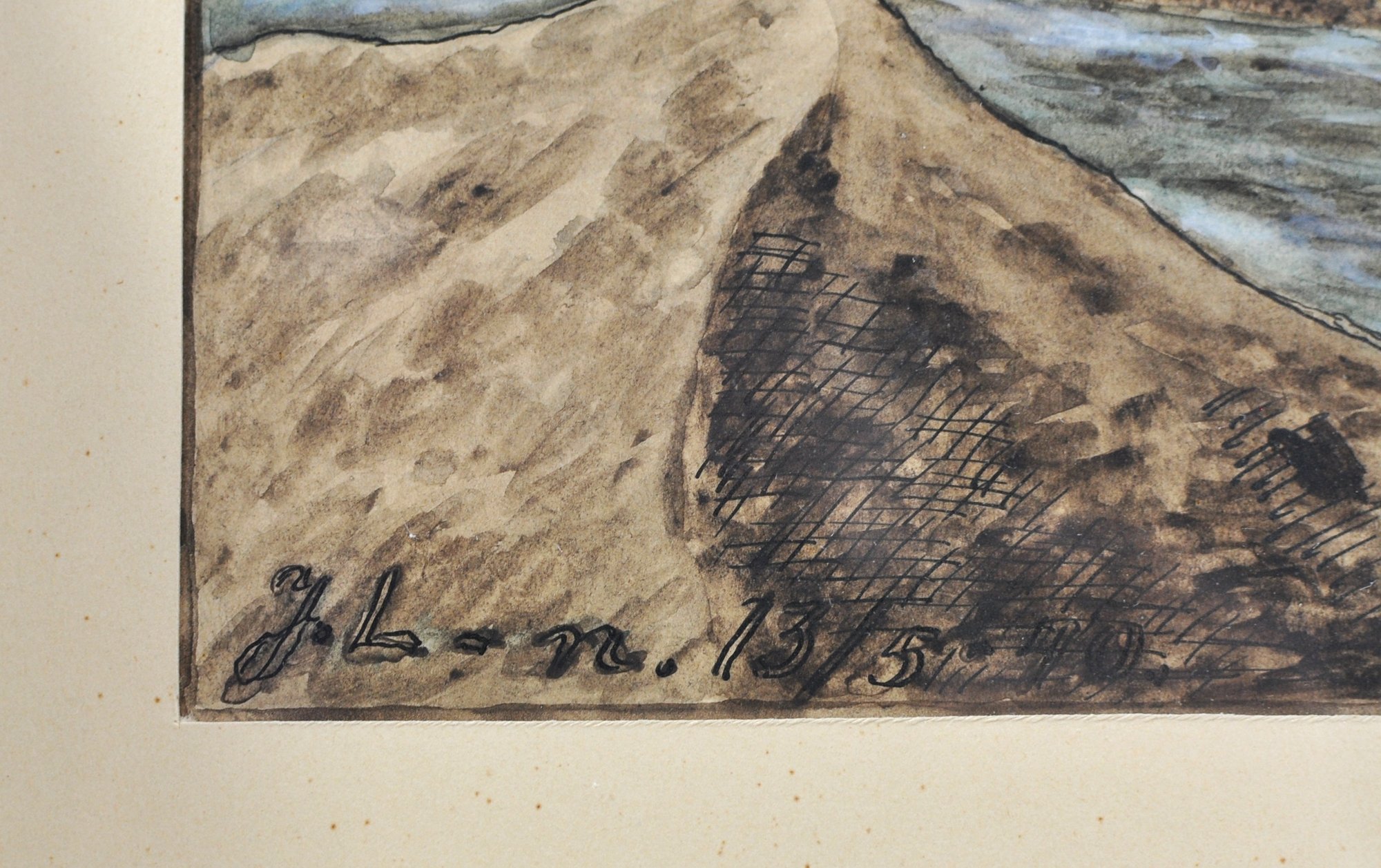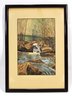 Signed lower left (illegible, appears dated possibly mid-20th century). Presented under mat in a dark wood frame.