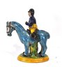 The piece reflects the traditional English Staffordshire equestrian figurine style, popular in the late 19th and early 20th centuries. Nicely detailed with expressive modeling and colorful glazing, making it an attractive decorative display piece.