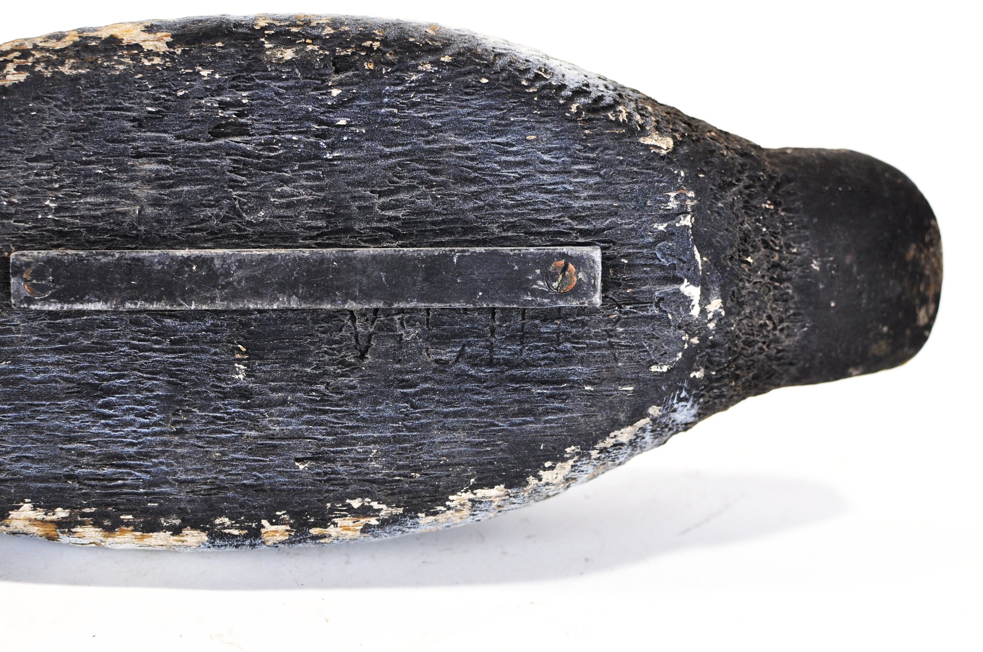 Condition: Good vintage condition with heavy, honest wear. Paint loss and surface scuffs throughout. Age-related cracking at the neck seam. Keel and line tie intact. Structurally solid.