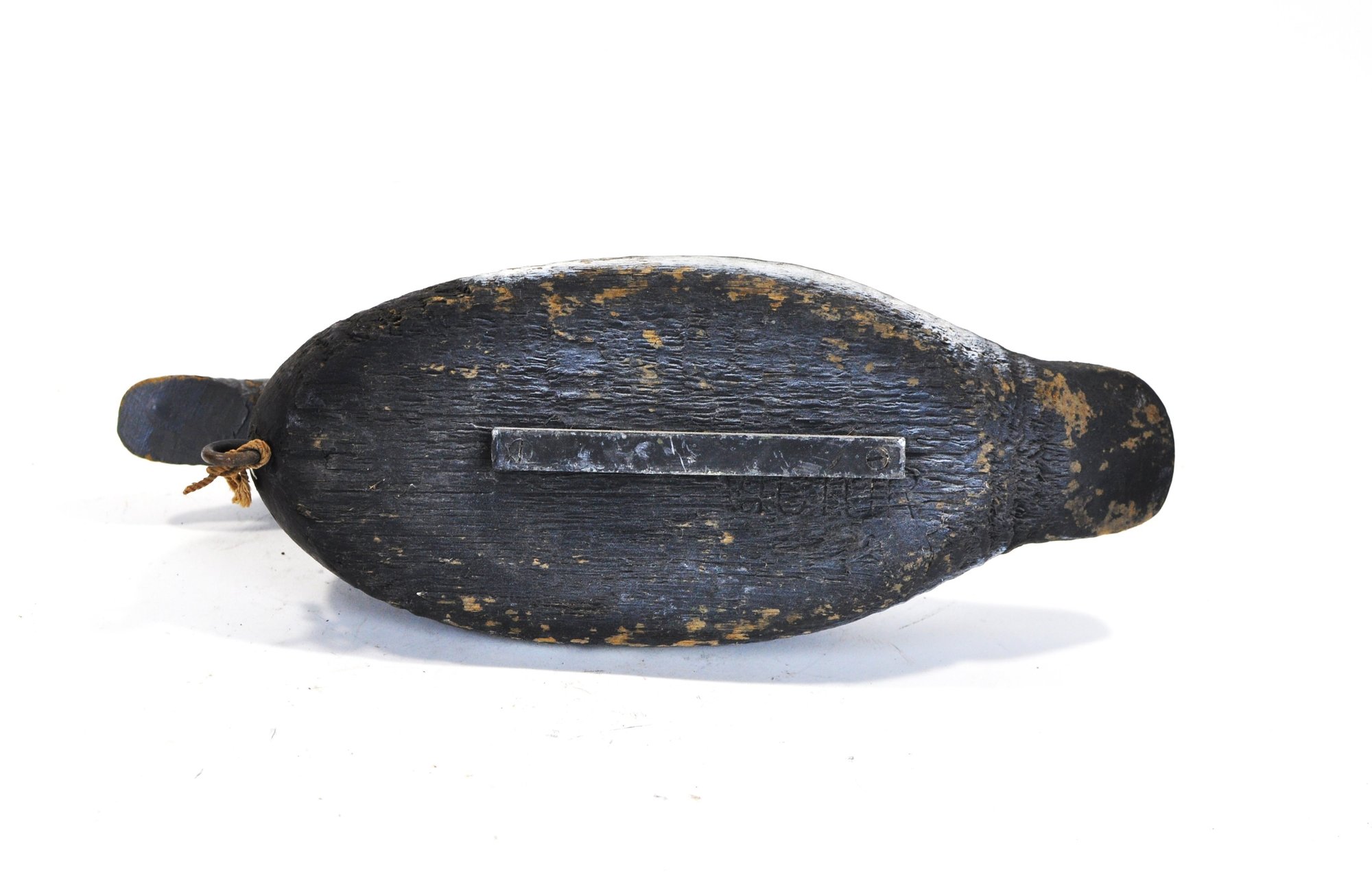 Condition: Good vintage condition with heavy, honest wear. Paint loss and surface scuffs throughout. Age-related cracking at the neck seam. Keel and line tie intact. Structurally solid.