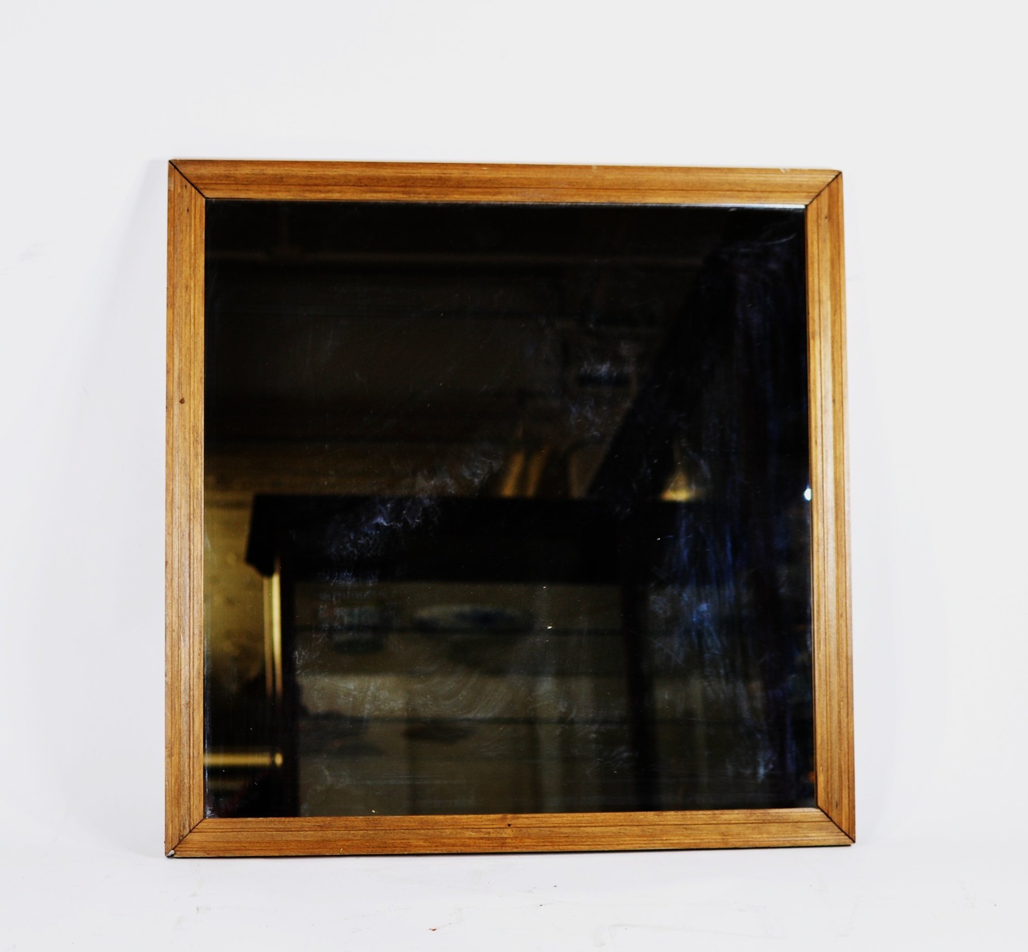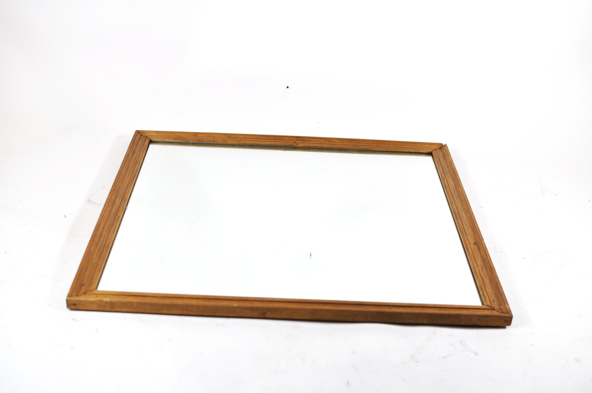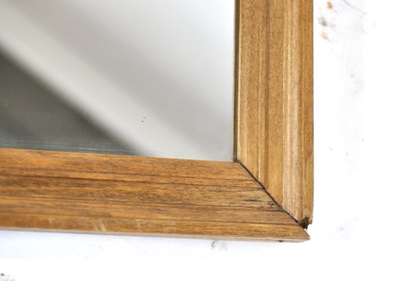 Vintage rectangular wall mirror in a simple stained wood frame.