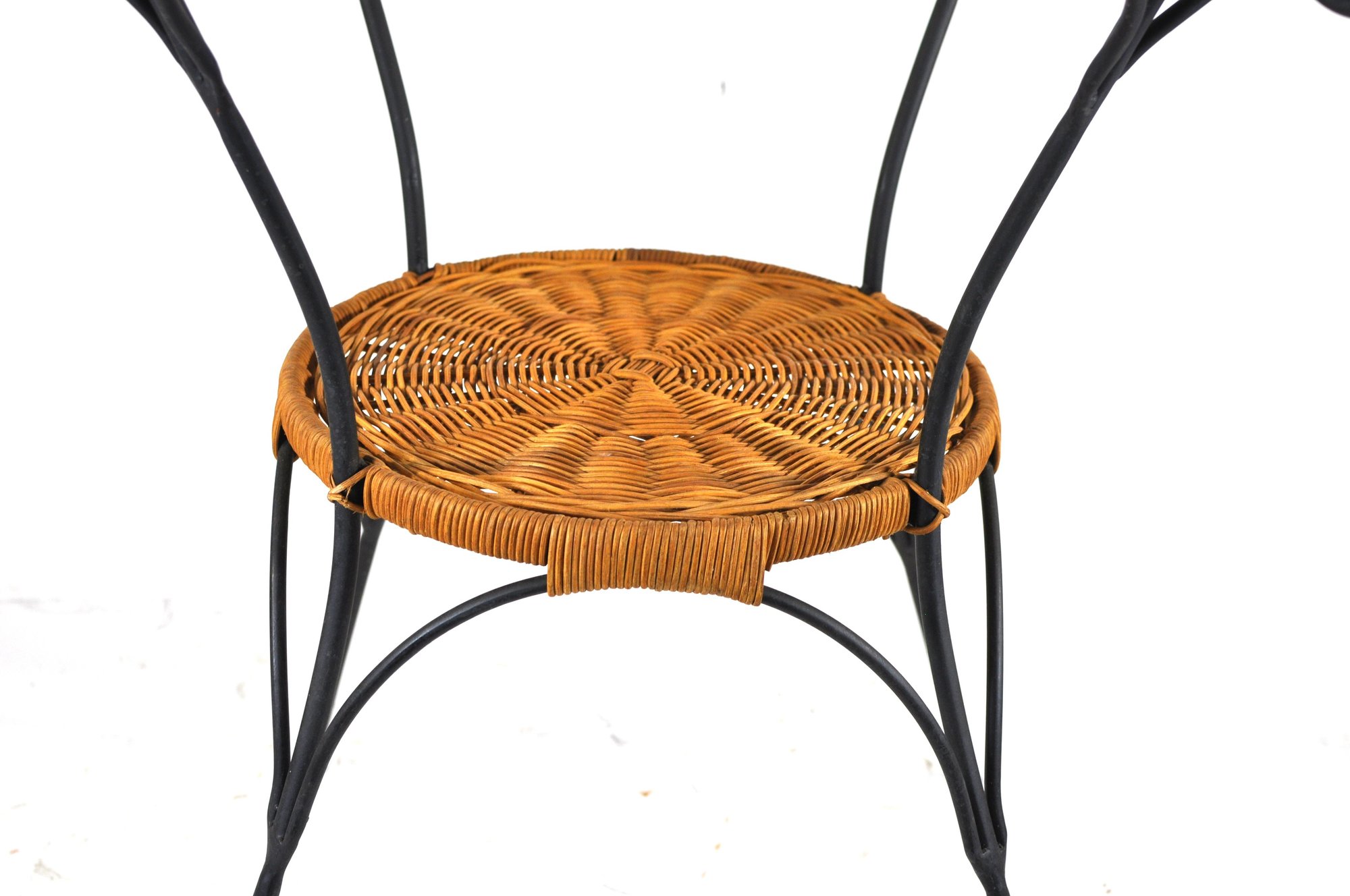 Condition: Good vintage condition with light wear to the wrought iron frame,