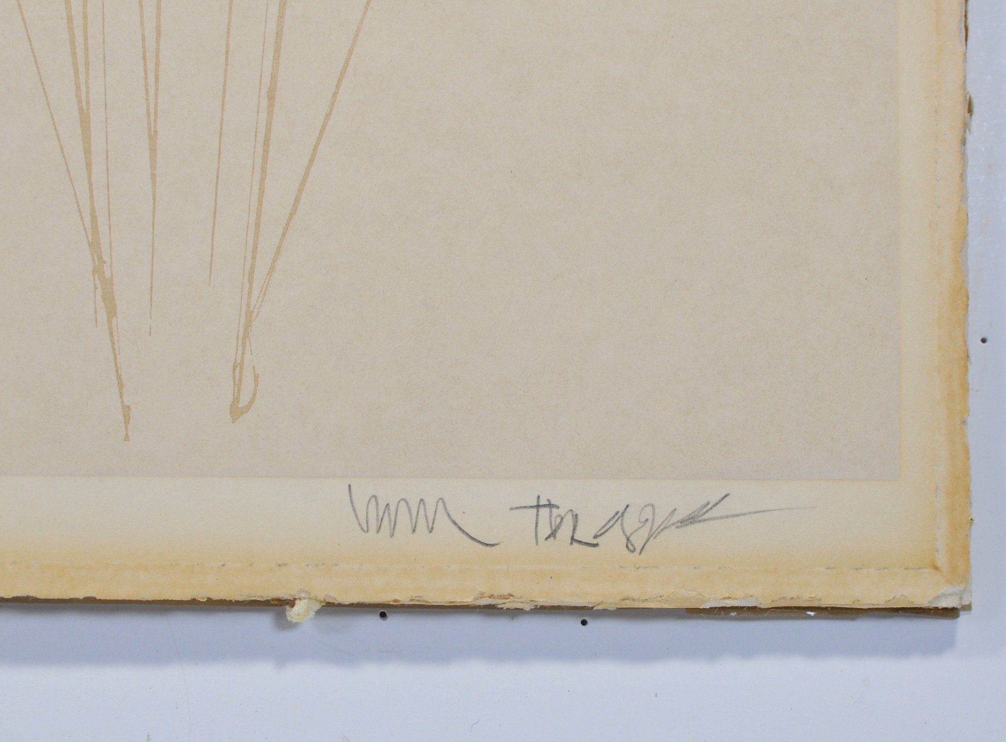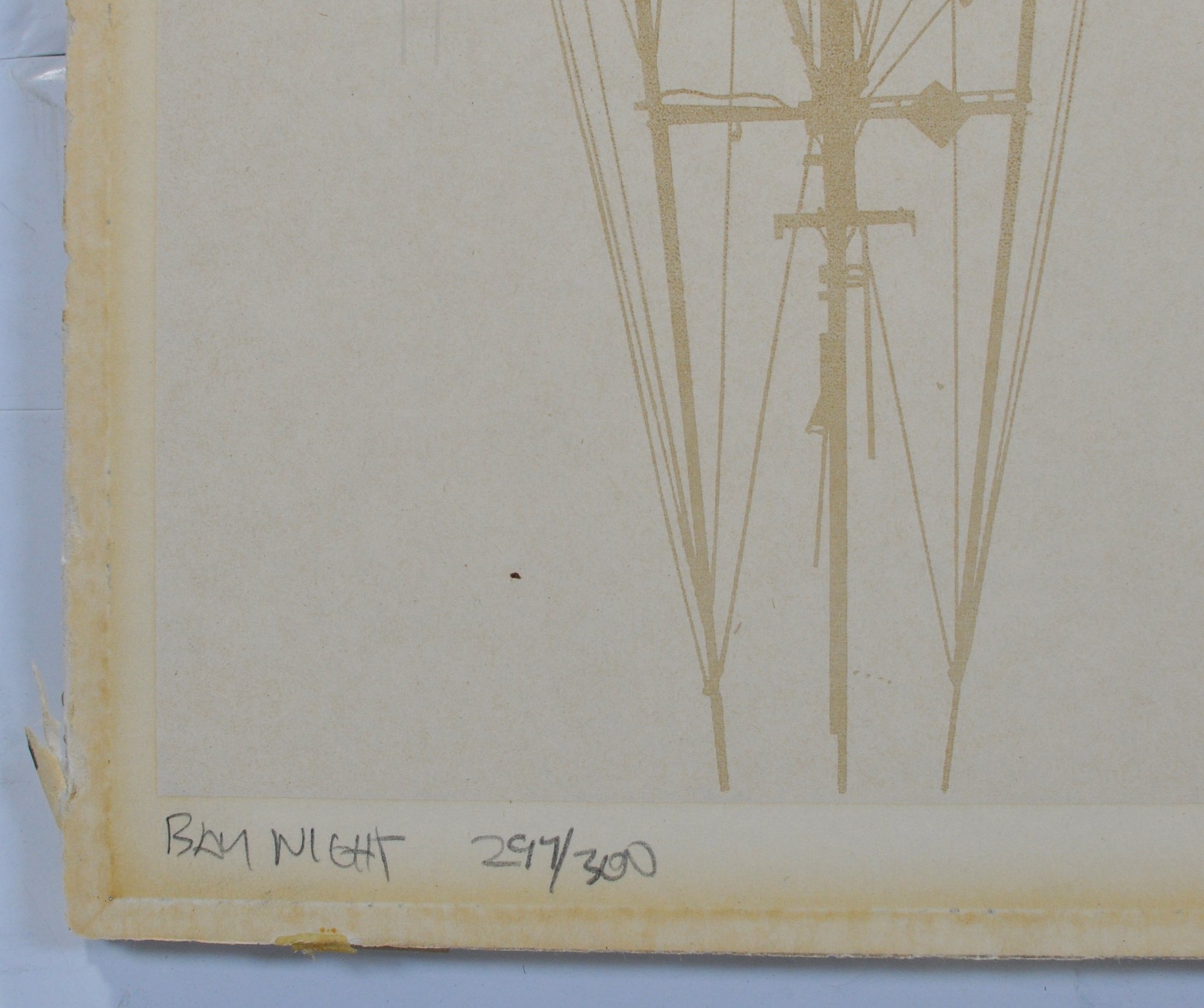 Pencil-signed by the artist at lower right and hand-numbered 29/300 at lower left. Verso bears an original gallery or inventory label identifying the artist and title. Unframed, mounted on acid free backing board.