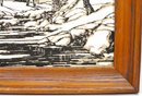 This is a printed textile, typical of mid-20th century Kay Dee Designs, known for producing decorative linen panels and wall hangings. Mounted and presented in oak frame.