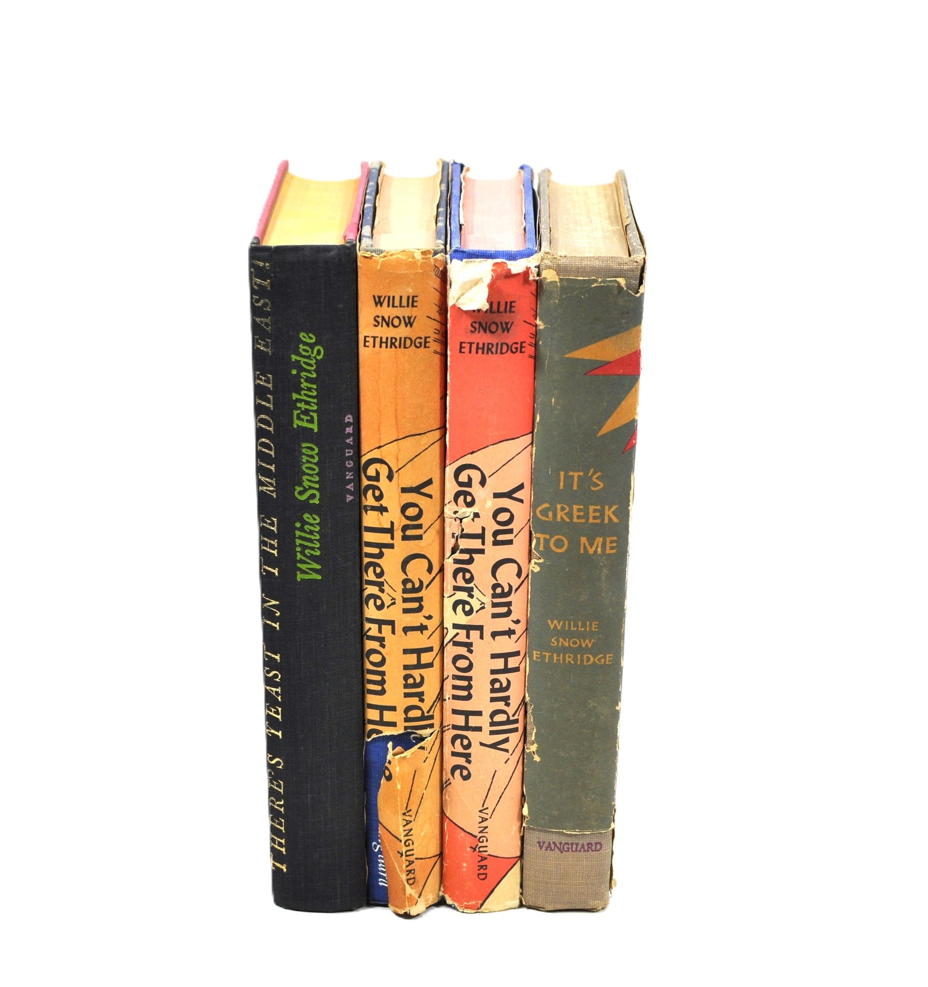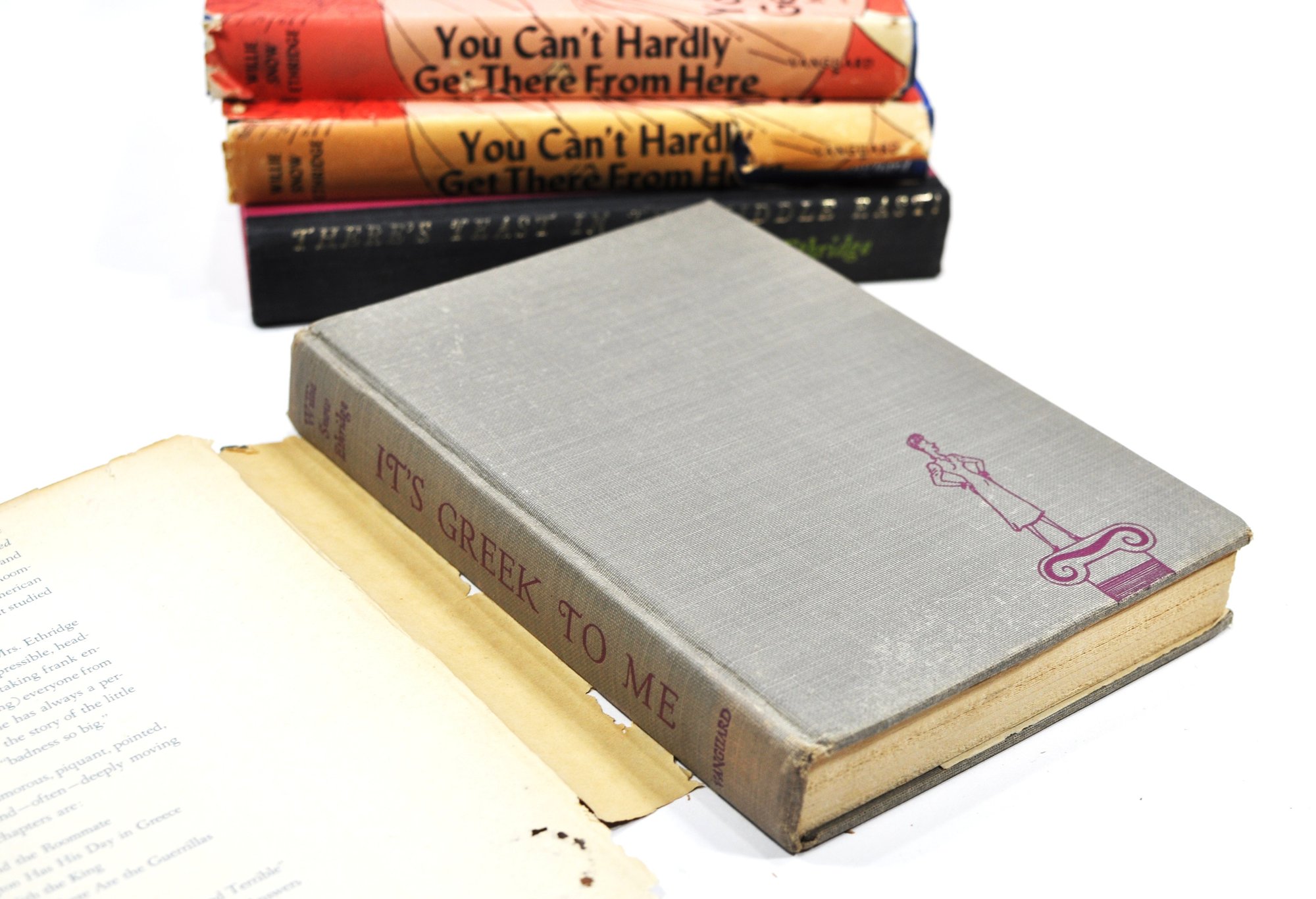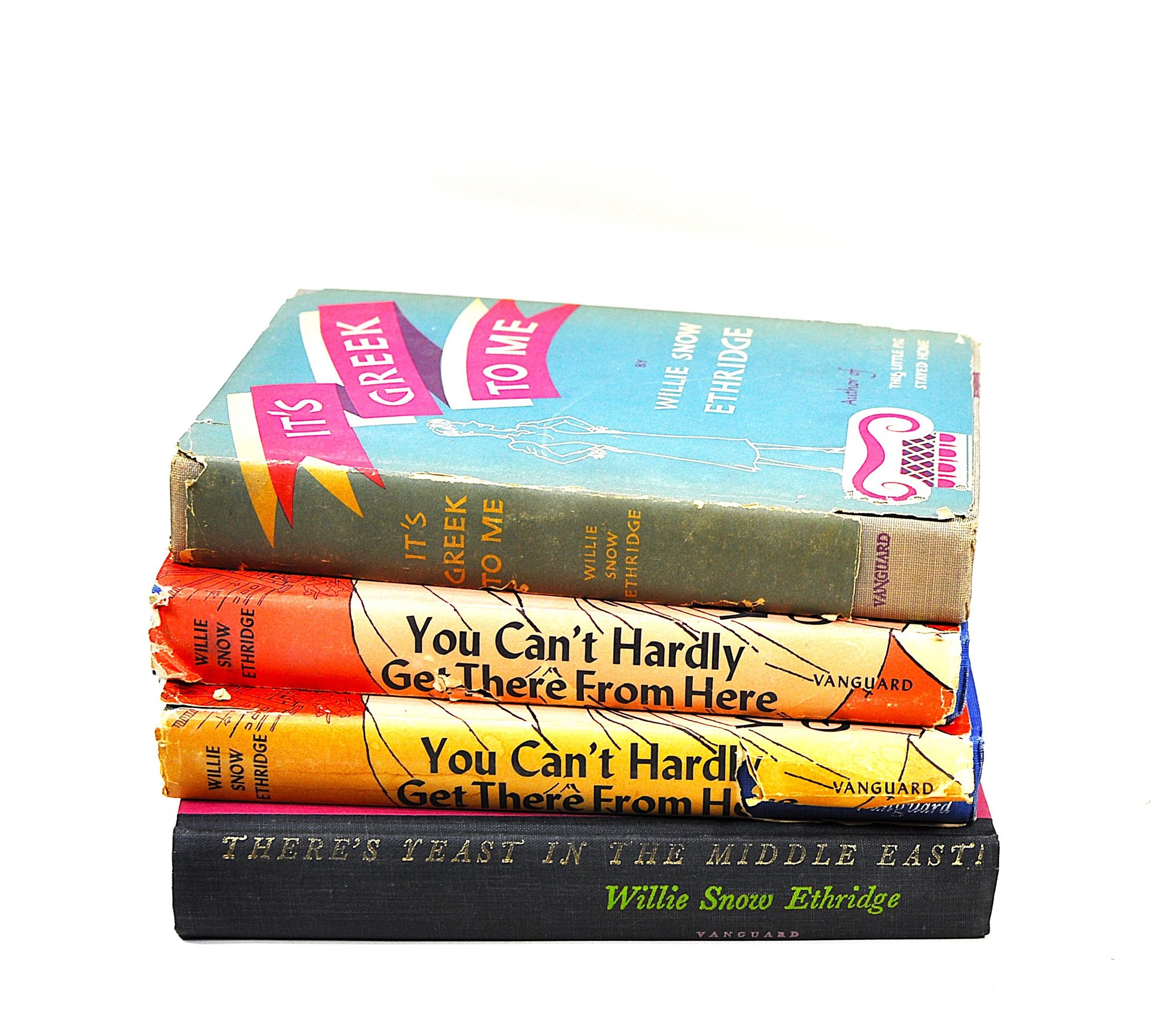 Group of Willie Snow Ethridge titles including You Can’t Hardly Get There From Here (2 copies, illustrated by Bob Parker), It’s Greek to Me, and There’s Yeast in the Middle East. Mid-20th century Vanguard Press editions, one copy inscribed by the author. Illustrated throughout.